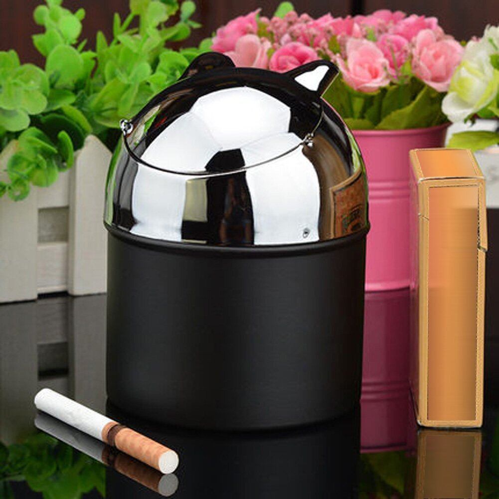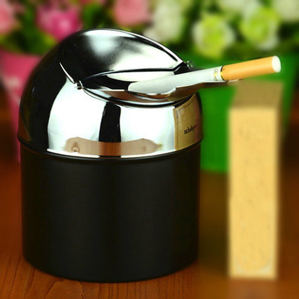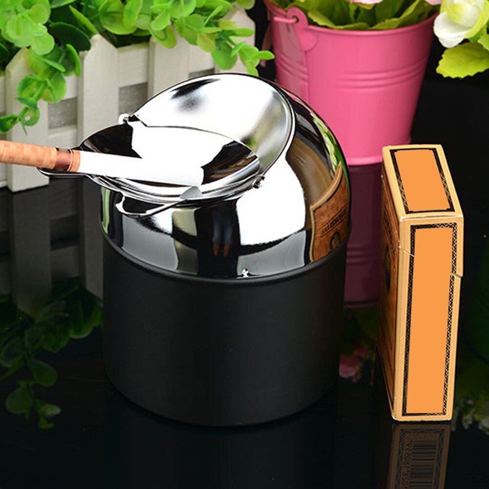 Coralpearl 卓上灰皿 ステンレス鋼 蓋付き タバコ用 丸い、金属 プッシュダウン灰皿 無煙 防風 フリップカバー付き、家庭、パティオ、オフィス、バー、屋外、屋内用