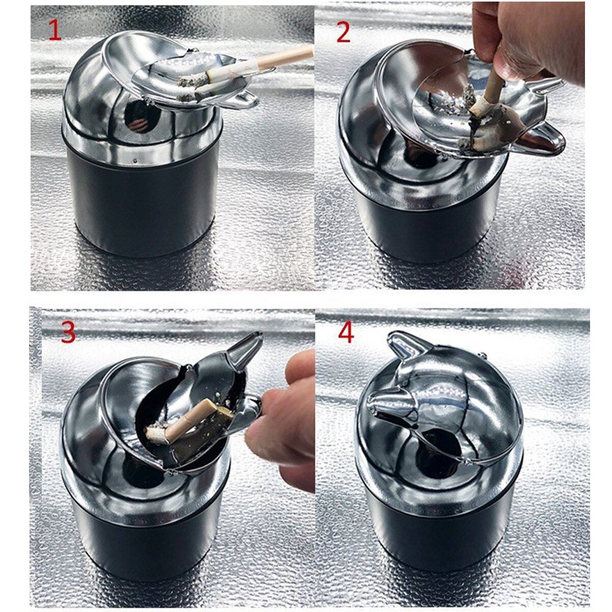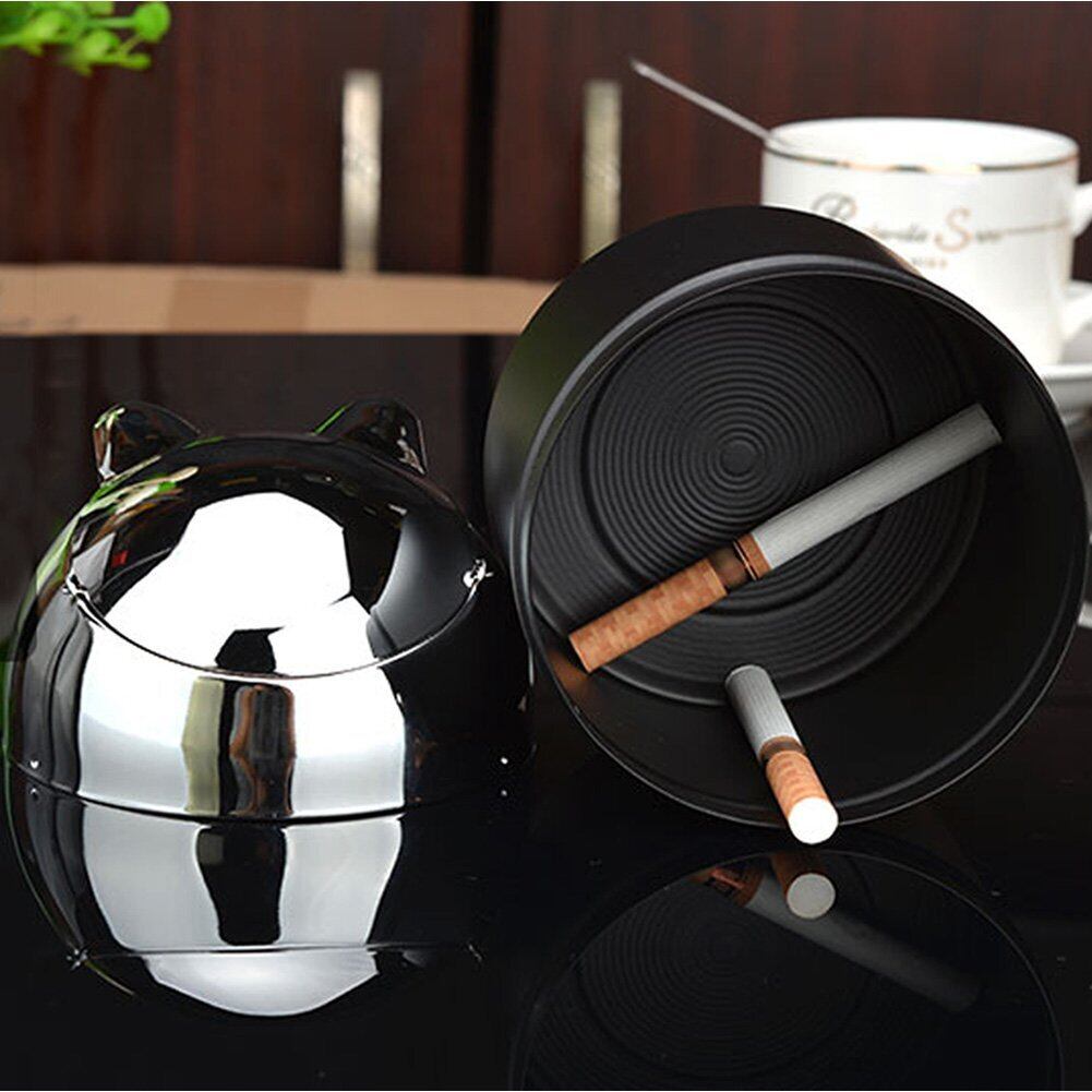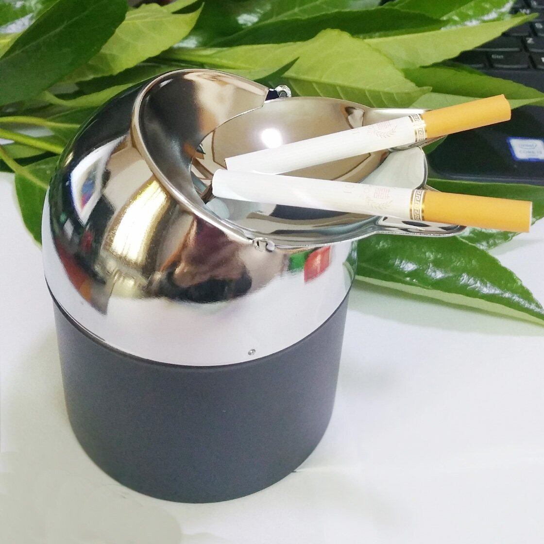 Coralpearl 卓上灰皿 ステンレス鋼 蓋付き タバコ用 丸い、金属 プッシュダウン灰皿 無煙 防風 フリップカバー付き、家庭、パティオ、オフィス、バー、屋外、屋内用