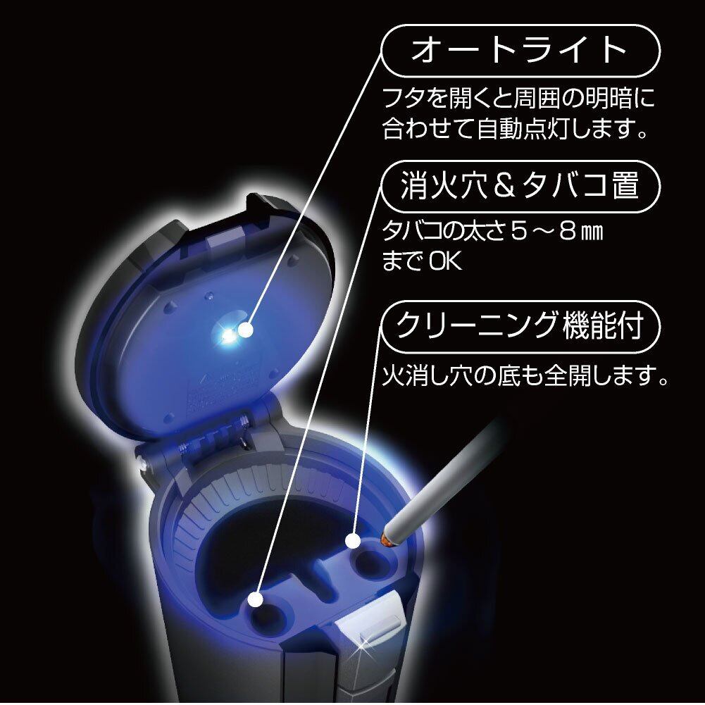 星光産業 EXEA 車内用品 灰皿 ソーラーライトアッシュ ED-217 ブラック