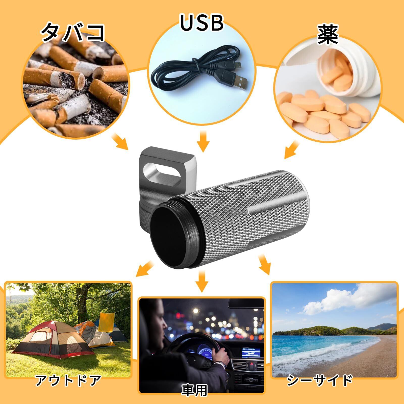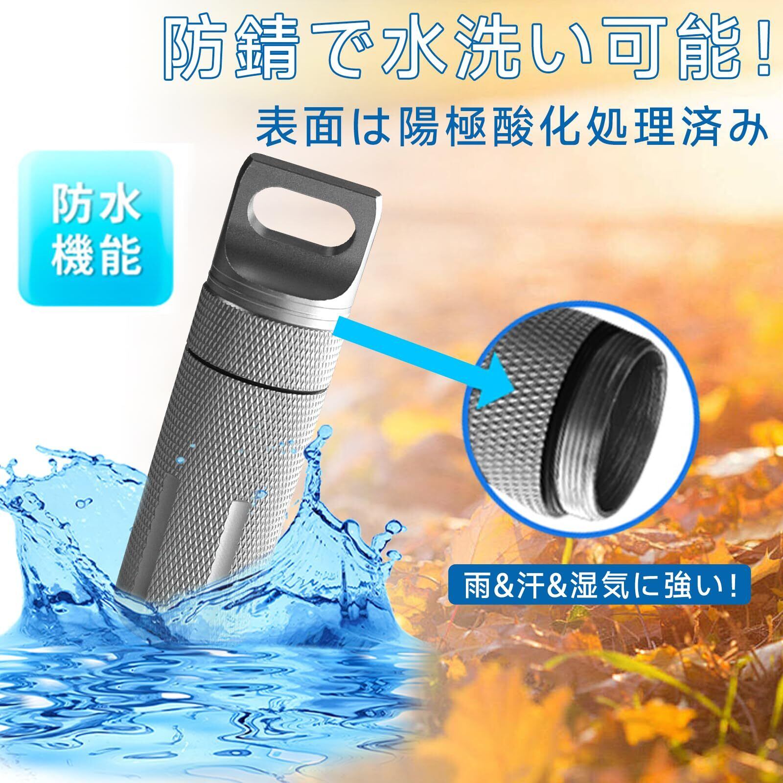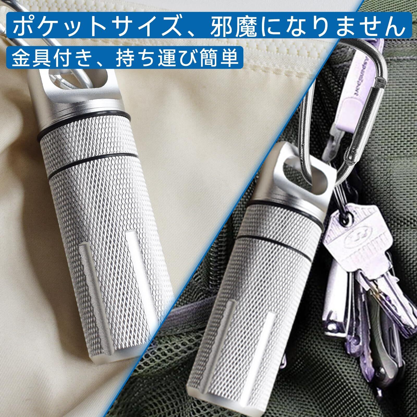 携帯灰皿 完全防水 防臭 小物いれ おしゃれ ピルケース カラビナ付き 耐湿防圧 CNC精密加工 密閉 アウトドア 野外 応急処置 キーホルダー カラビナ付き 薬入れ 頑丈 軽量 アルミ ピルケース 携帯型 防災グッズ (シルバー) | kki