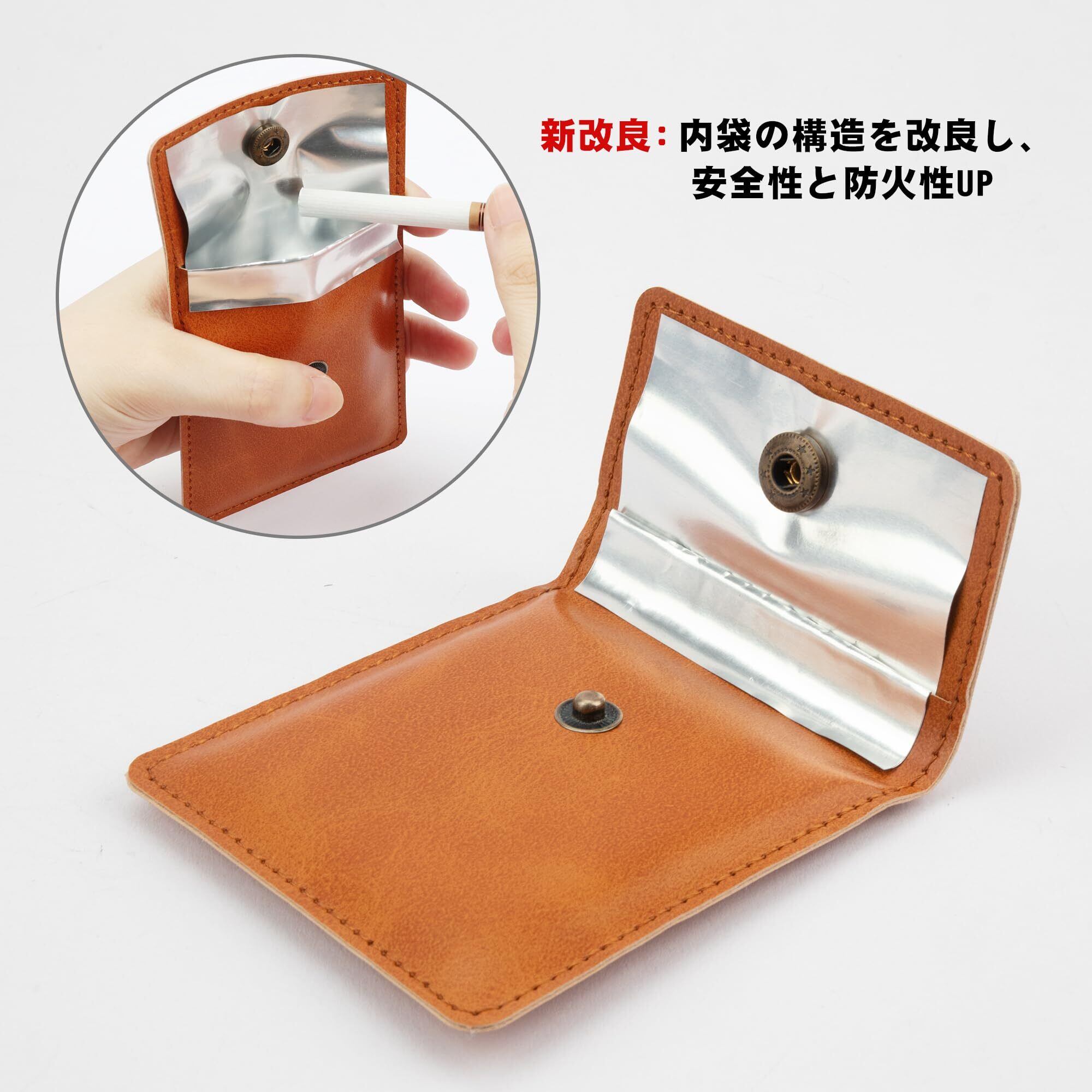 [TEMLUM] 携帯灰皿 携帯用吸殻入れ 4点セット購入 高級 PU 小銭入れ 携帯はい皿 おしゃれ ポケット入れ 小型 マナーを守る サイズ (キャメル)