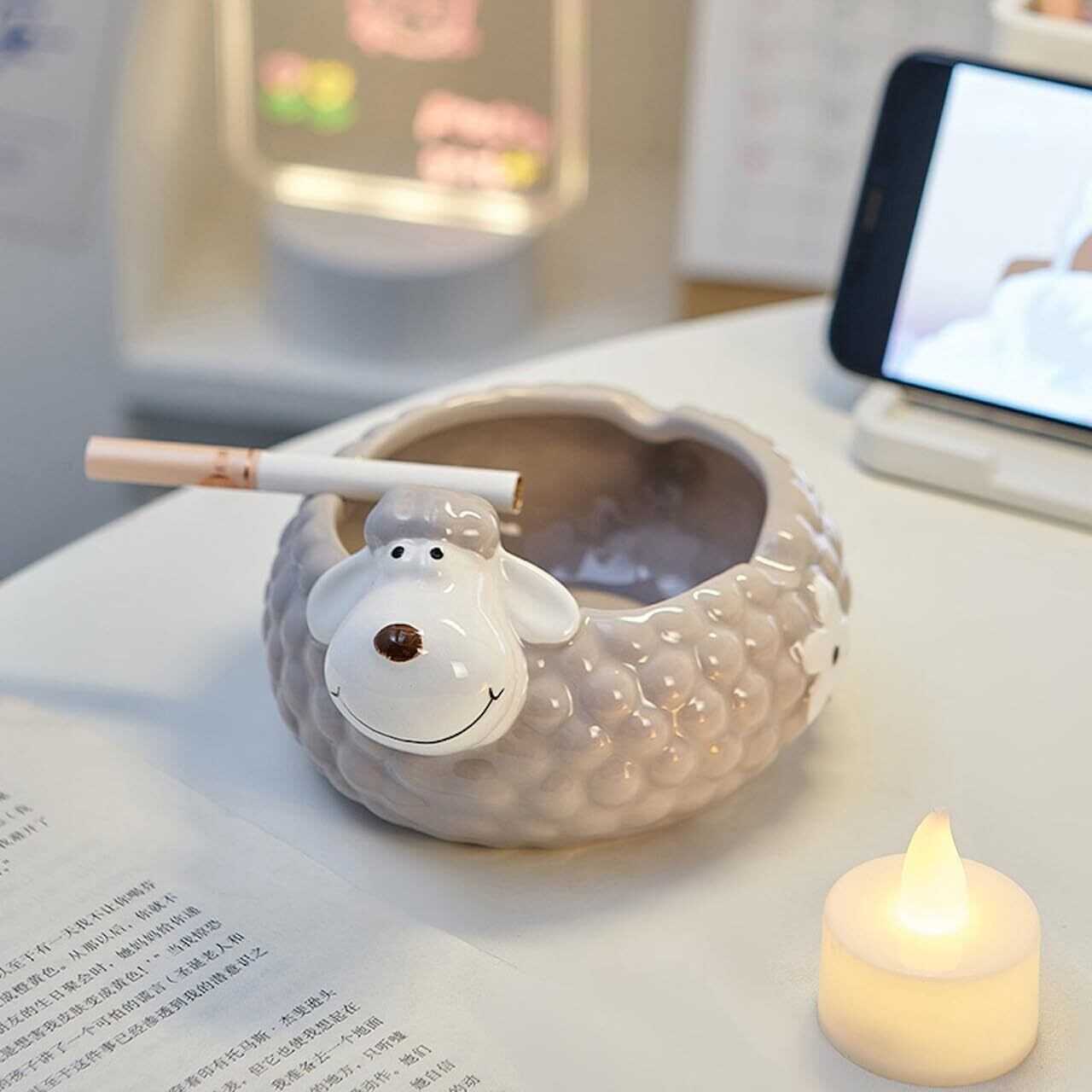 [Queen-b] 灰皿 羊 ひつじ かわいい 卓上 テーブル おしゃれ インテリア タバコ 煙草 洗いやすい 喫煙 グッズ アシュトレイ 小物入れ 収納 トレイ (ホワイト)
