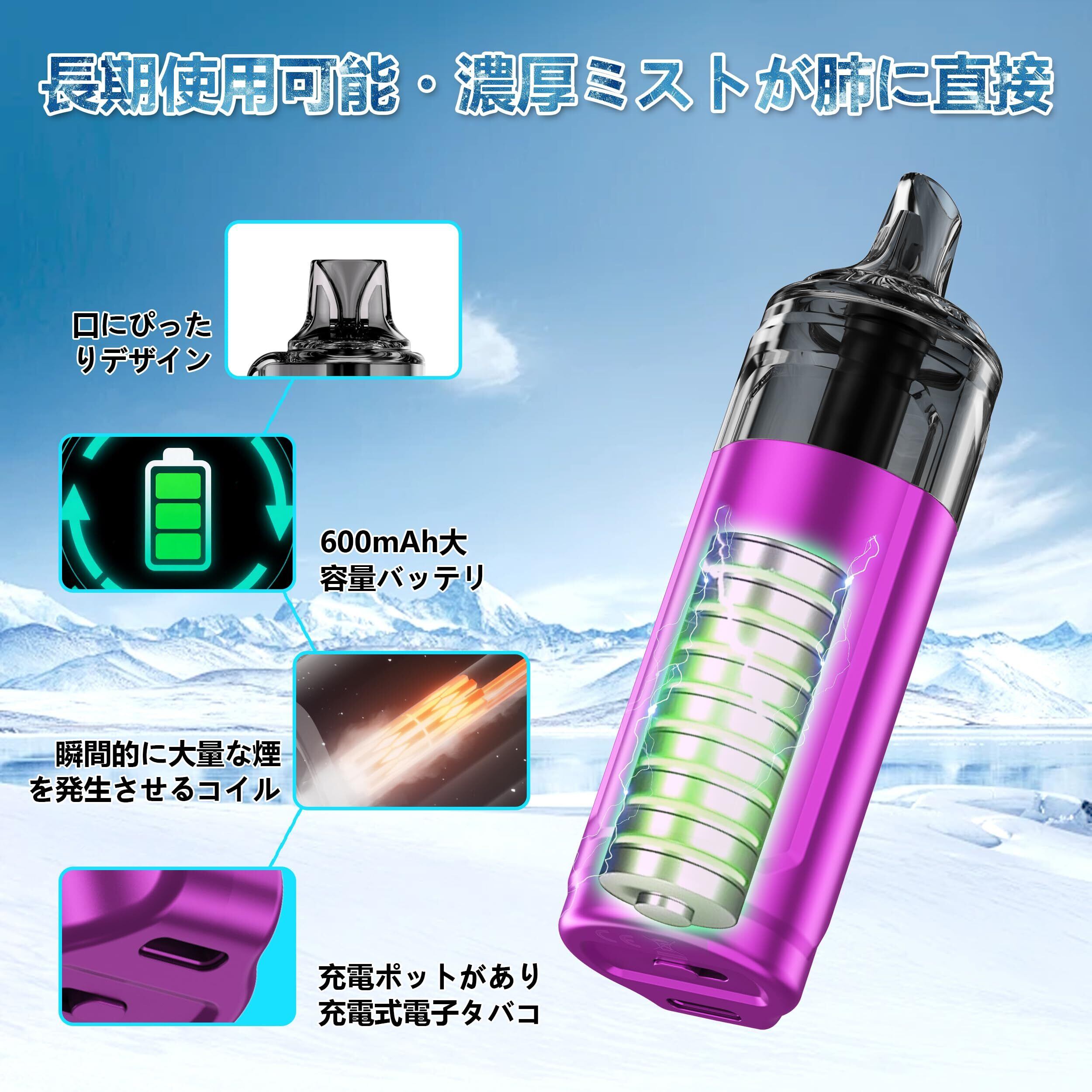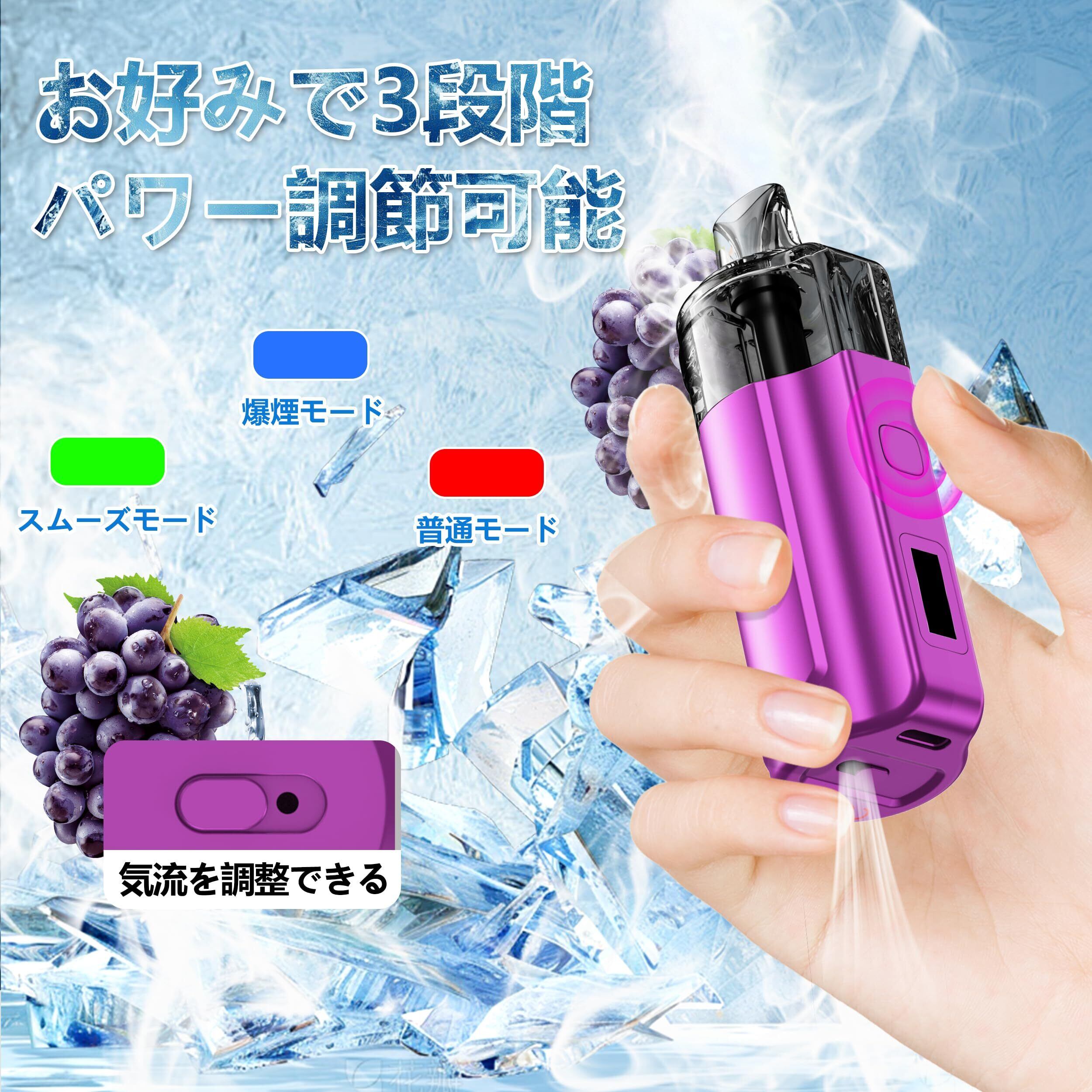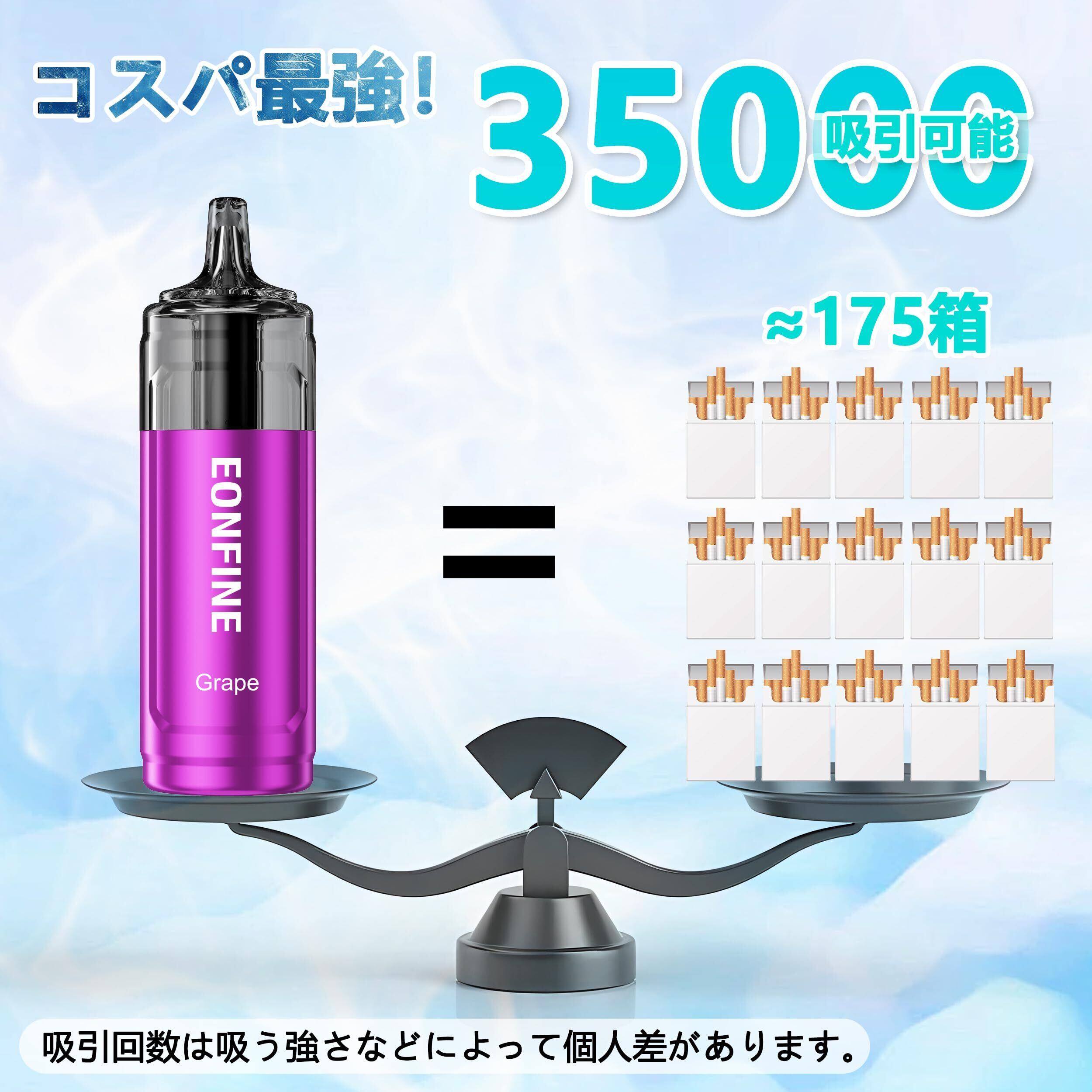 Eonfine 電子タバコ 使い捨て ベイプ パワー調節可能 35000回吸引可能 リキッド残量表示 シーシャ vape LEDスクリーン付き Type-C充電可能 大容量 爆煙 600mAhバッテリー 禁煙グッズ 水蒸気タバコ タール0ニコチン0 電子たばこ グレープ | kki