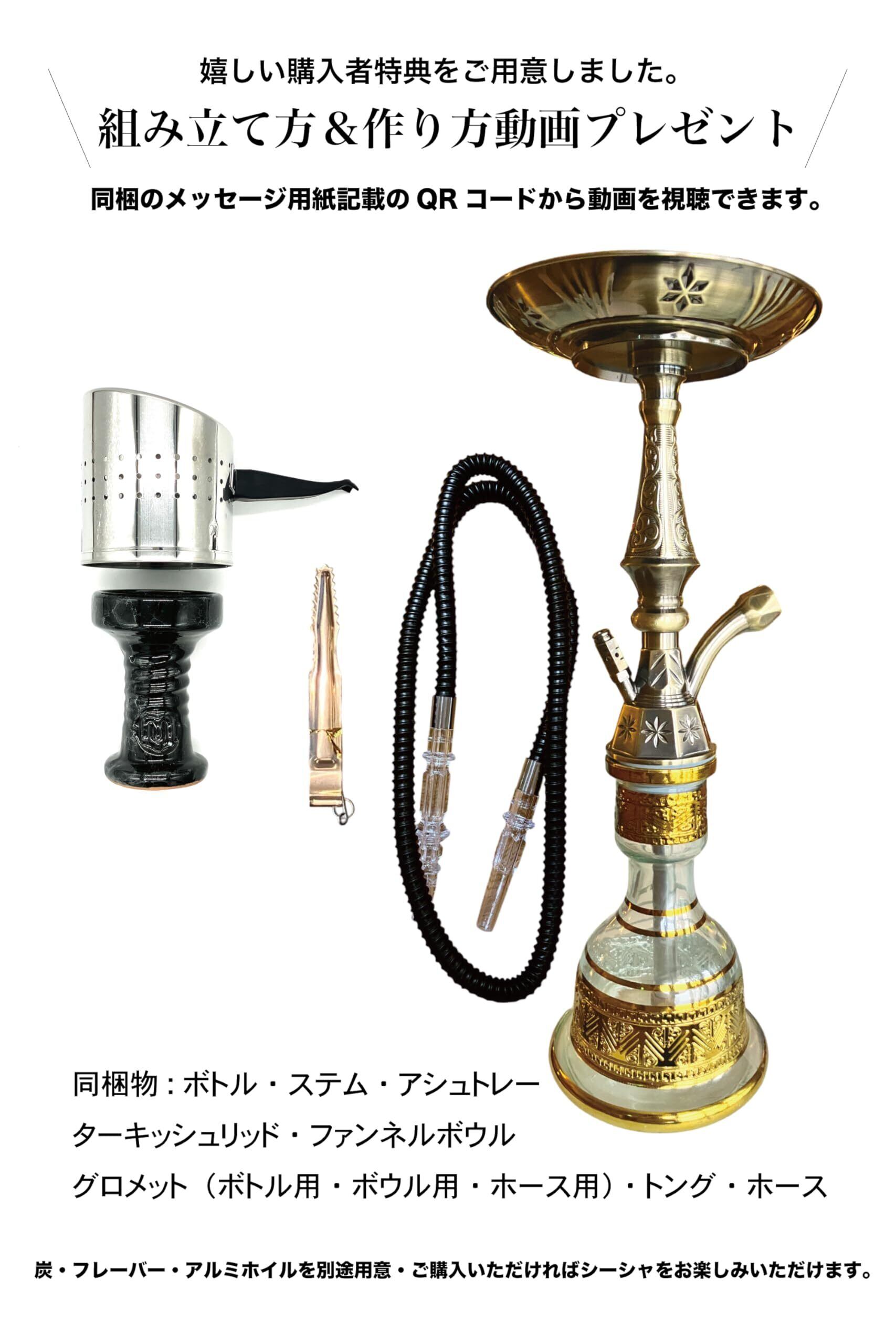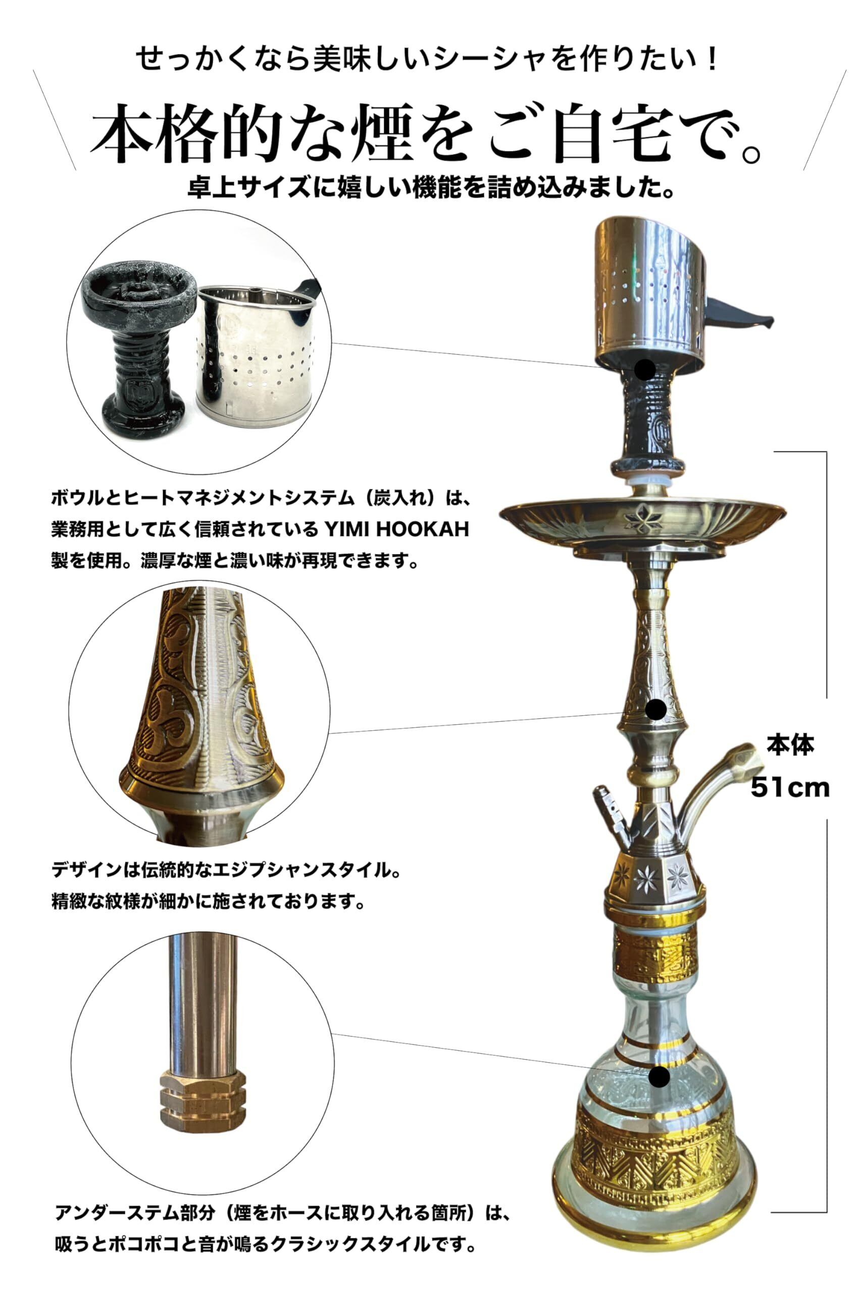 COTTON BOY コットンボーイ シーシャ 本体 セット パイプ エジプシャン YIMIボウル ターキッシュリッド 業務用合金モデル ゴールド 初めての1台に ガラスボトル 卓上サイズ 水たばこ | kki