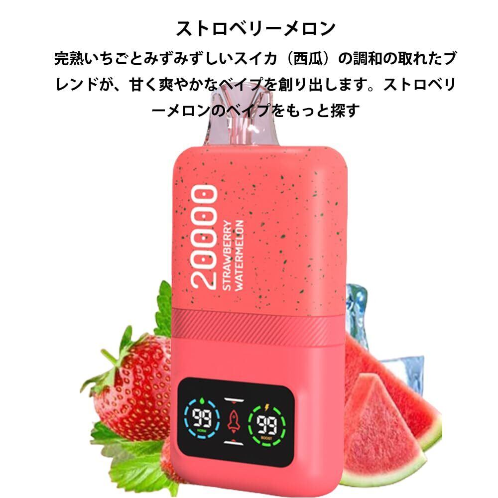 電子タバコ 使い捨てシーシャ【20000回吸引可能】デュアルモード調整可能 600mAh バッテリー&リキッド残量表示 爆煙設計 持ち運び便利 VAPE ベイプ 充電式Type-C 水蒸気たばこ 禁煙サポート人気フレーバー搭載 ニコチンゼロ (ストロベリースイカ) | kki