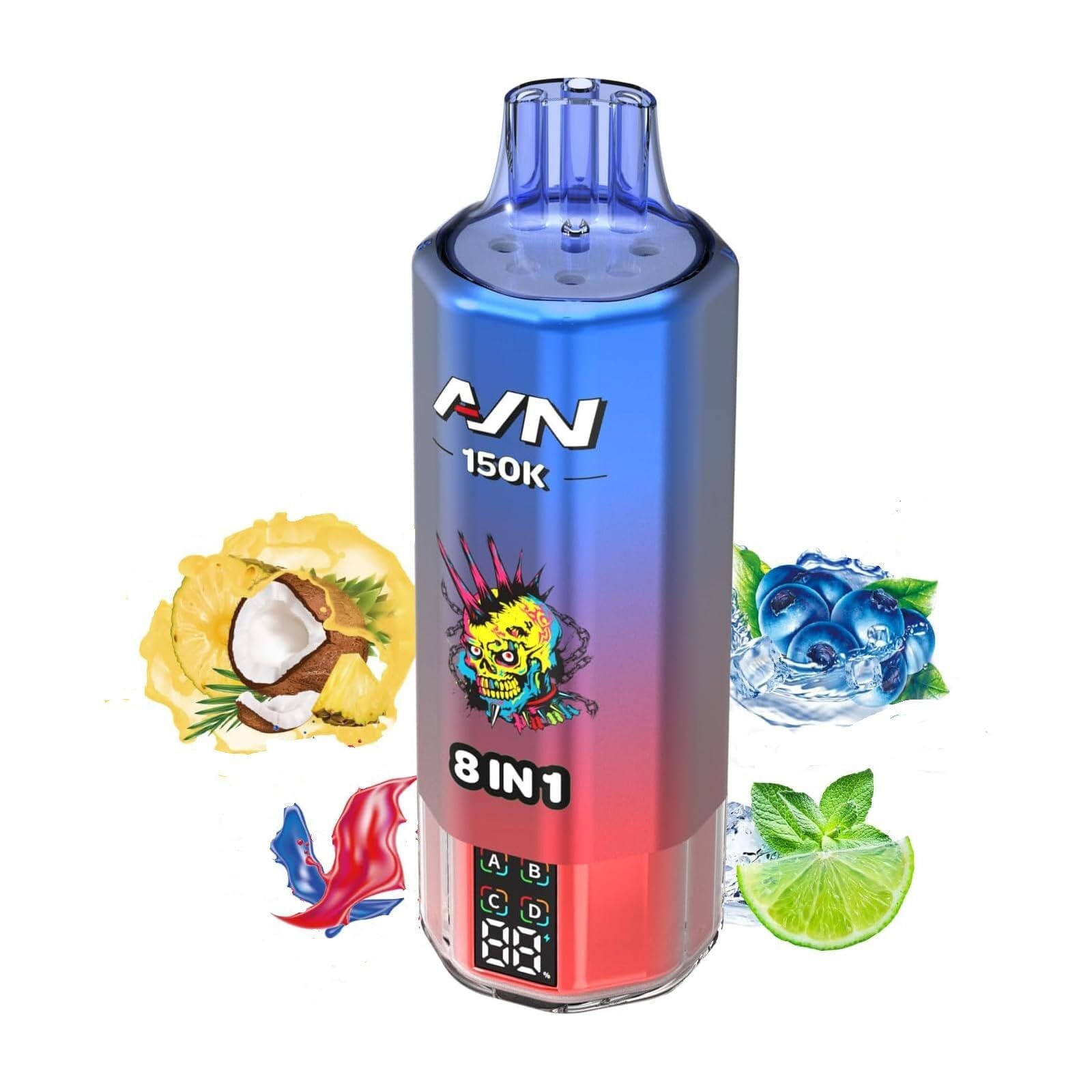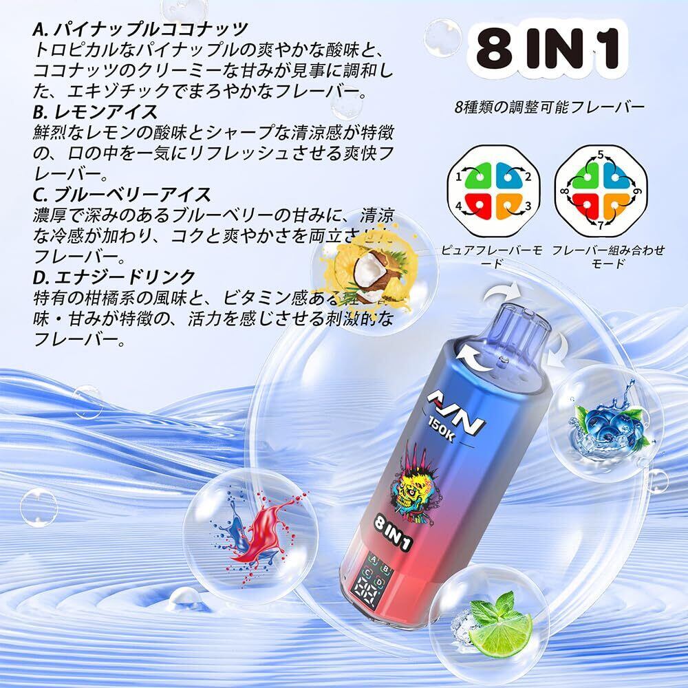 【8in1フレーバー】電子タバコ 使い捨て 持ち運び便利シーシャ VAPE ベイプ 850mAhバッテリー LEDディスプレイ搭載 バッテリー&リキッド残量表示 Type-C 水蒸気たばこ 禁煙サポート人気フレーバー搭載 ニコチンゼロ (パインアップルココナッツ + レモンアイス + ブルーベリーアイス + エナジードリンク) | kki