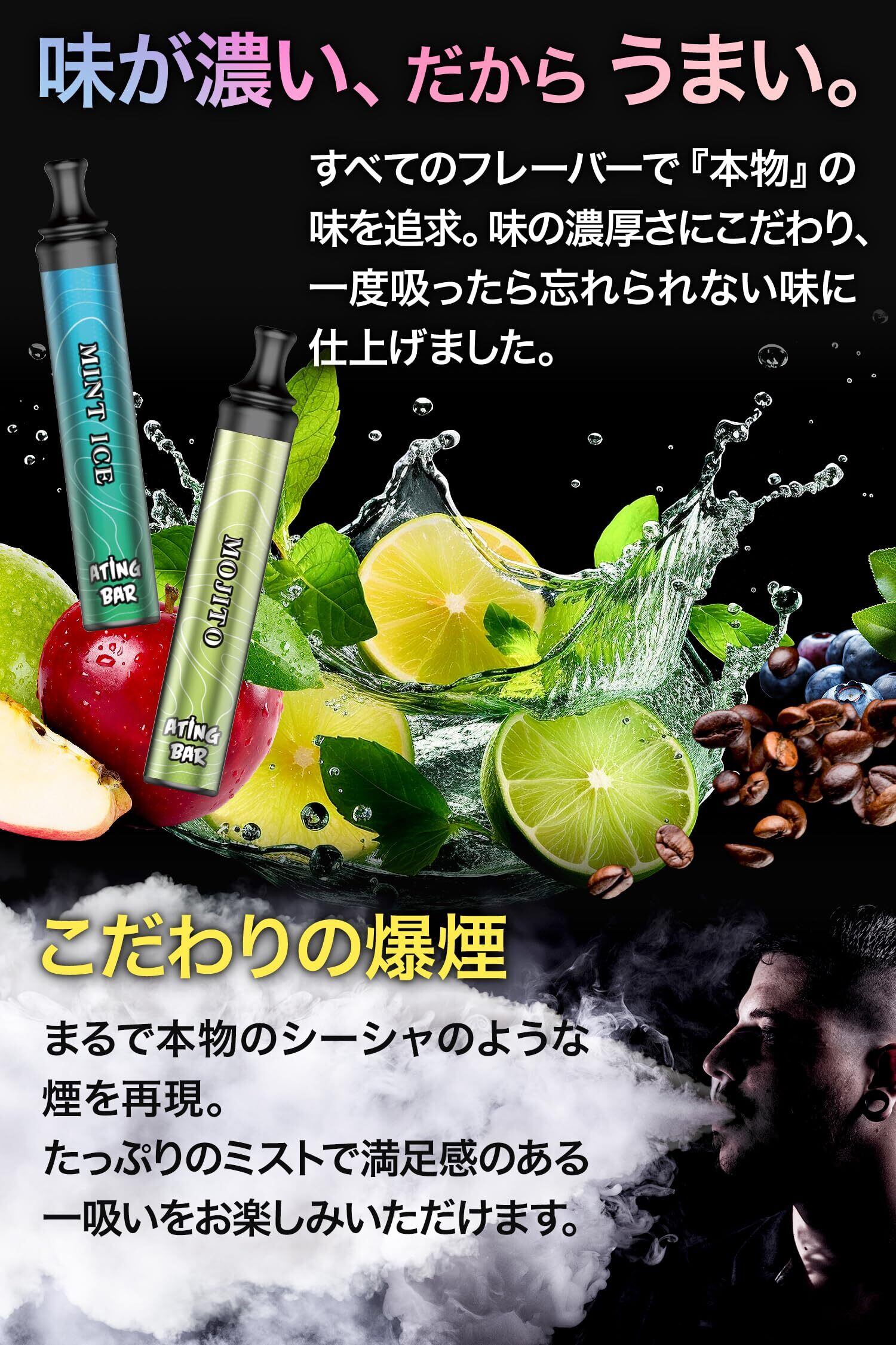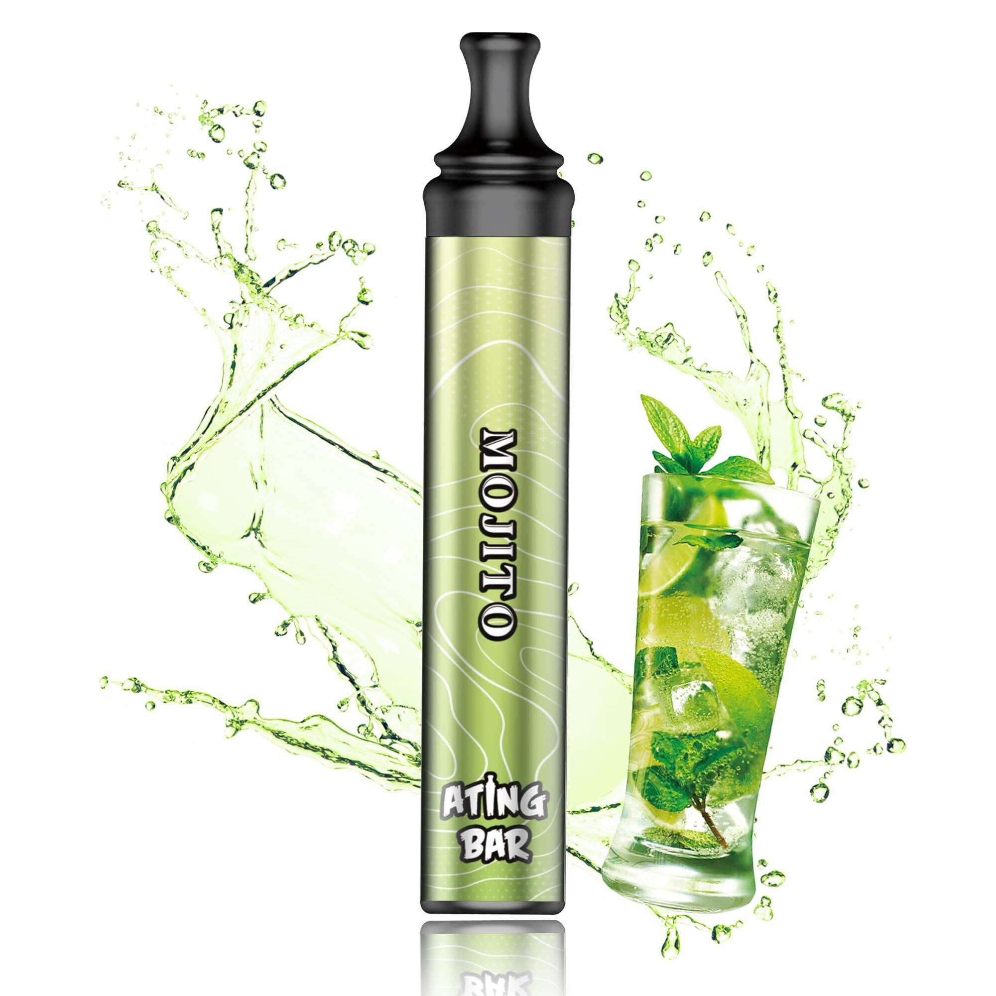 【エーティングバー 公式】 持ち運び シーシャ (1800回 パフ) ニコチン & タール zero 食品成分で安心 [使い捨て 電子タバコ] 水タバコ 禁煙 サポート 【爆煙/新感覚 リラックス 体験】 [ノンニコチン ノンタール 一酸化炭素ゼロ] コンパクト おしゃれ デザイン (1本 / モヒート) 【ATING BAR】 | kki