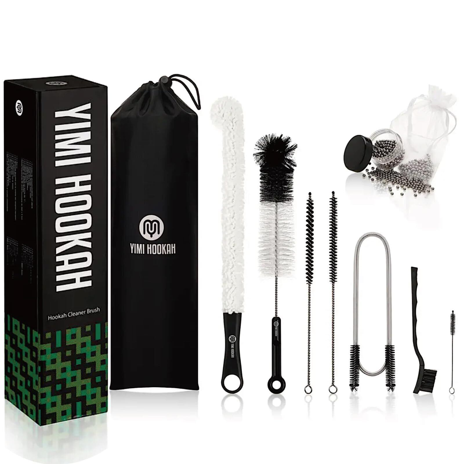 YIMI HOOKAH イミフーカ シーシャ 本体 掃除 ブラシ8点 メンテナンス オーバーホールキット クリーニング 小型 中型パイプ向け 水垢落とし 専用収納袋付き 業務用 水たばこ ステム ボウル ハガル 排気弁洗浄 | kki