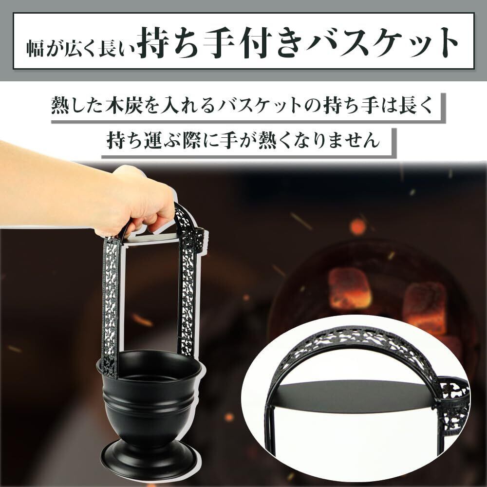 持ち手付き炭バスケット 木炭保管 シーシャ用 持ち手 トング ポータブル ホルダー 店舗