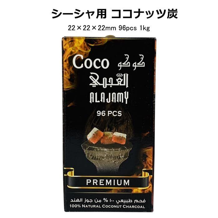 シーシャ 炭 22mm 96pcs 1kg Ajamy Coconut Charcoal Premium 96pcs アジャミー ココナッツ チャコール CoCo キューブ フーカー 水タバコ 水パイプ shisha hookah VAPEHANA オリジナルバンド付き | kki
