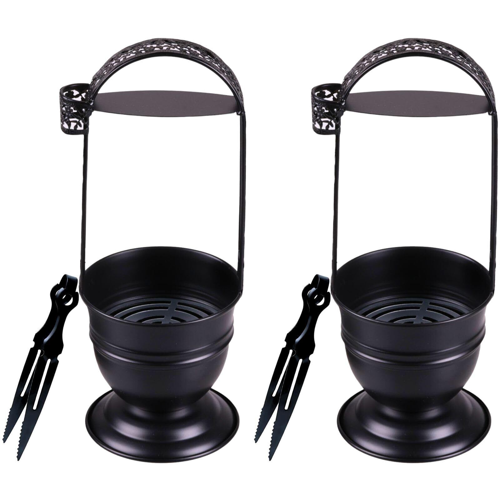 シーシャ 炭入れ 持ち運び 携帯用 チャコール バスケット トング付 金属製 ホルダー 木炭 ブラック (2個)