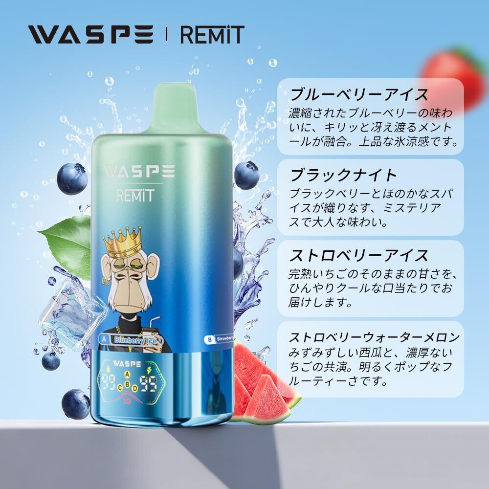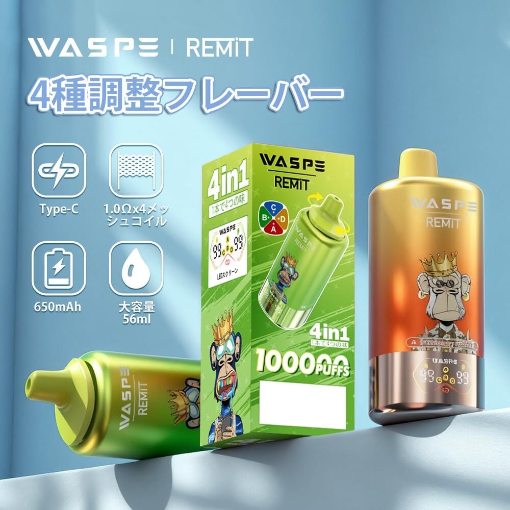 【4in1】電子タバコ 使い捨て Waspe & Remit 100,000パフス 4in1 ベイプ vape 人気フレーバー メッシュコイル 爆煙 Type-C充電 シーシャ 水蒸気タバコ タール無し ニコチンゼロ (ブルーベリー·アイス&ブラック·ナイト&ストロベリー·アイス&ストロベリー·スイカ) | kki