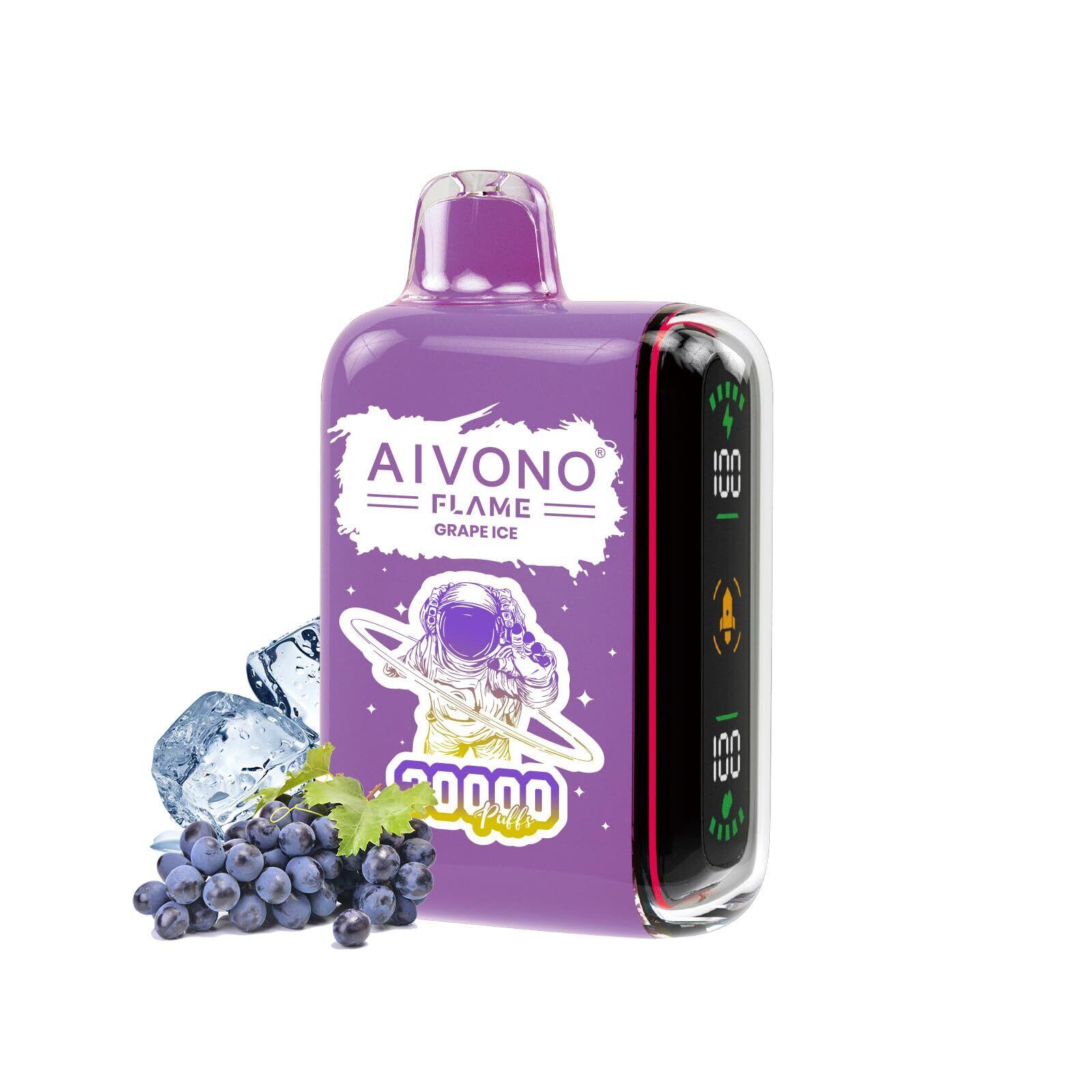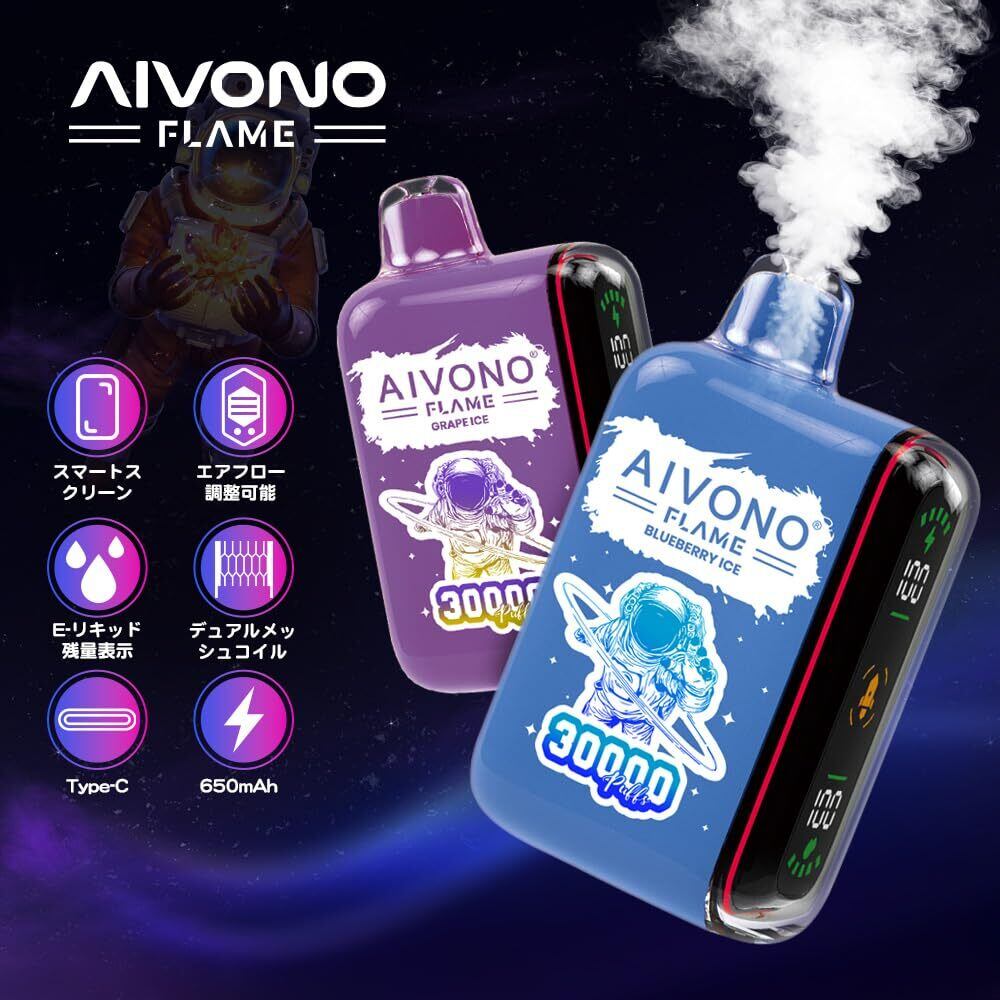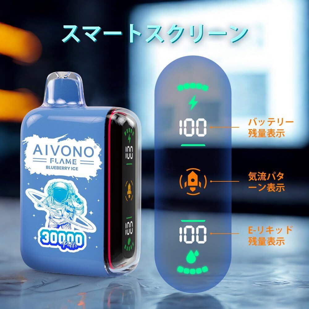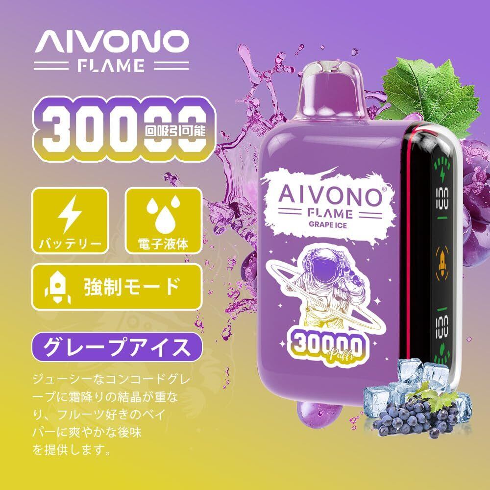 電子タバコ ベイプ 使い捨て 30000回 吸引可能 AIVONO シーシャ 持ち運び 充電式 Vape 爆煙 LEDディスプレイ 禁煙パイポ ニコチンフリー タールなし (ブドウのアイス) | kki