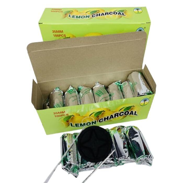 シーシャ用 炭 フラット レモン チャコール 3.3cm 100個入り 着火炭 フーカー 水タバコ 水パイプ クイックチャコール ライターで着火できる shisha hookah VAPEHANA オリジナルバンド付き | kki