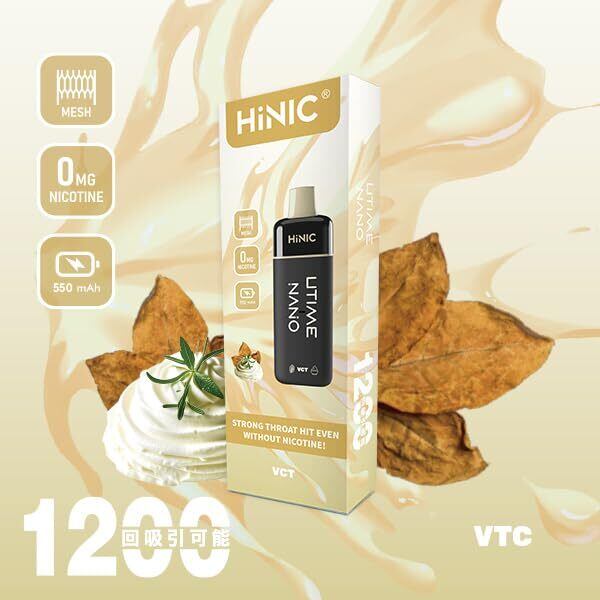 HiNIC UTIME NANO 電子タバコ 使い捨て 1200回吸引可能 シーシャ 持ち運び ベイプ vape ノンニコチン・タール・色素0フルーツ フレーバー 禁煙グッズ 吸い応え ニコチンなし 爆煙 (1個入り, バニラカスタードタバコ) | kki