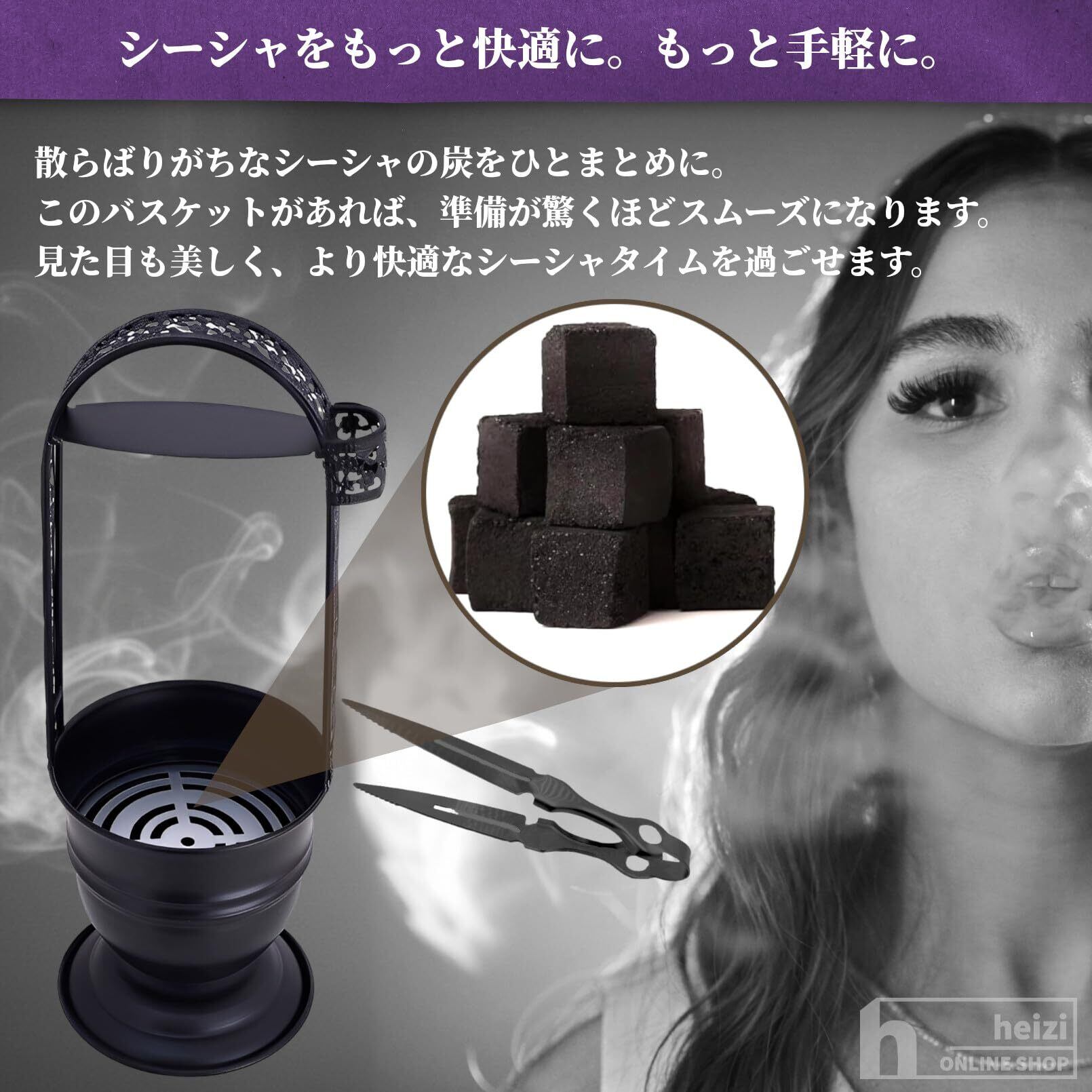heizi シーシャ 炭入れ トング付 持ち運び チャコール シーシャ用炭置き 金属製 ホルダー (ブラック)