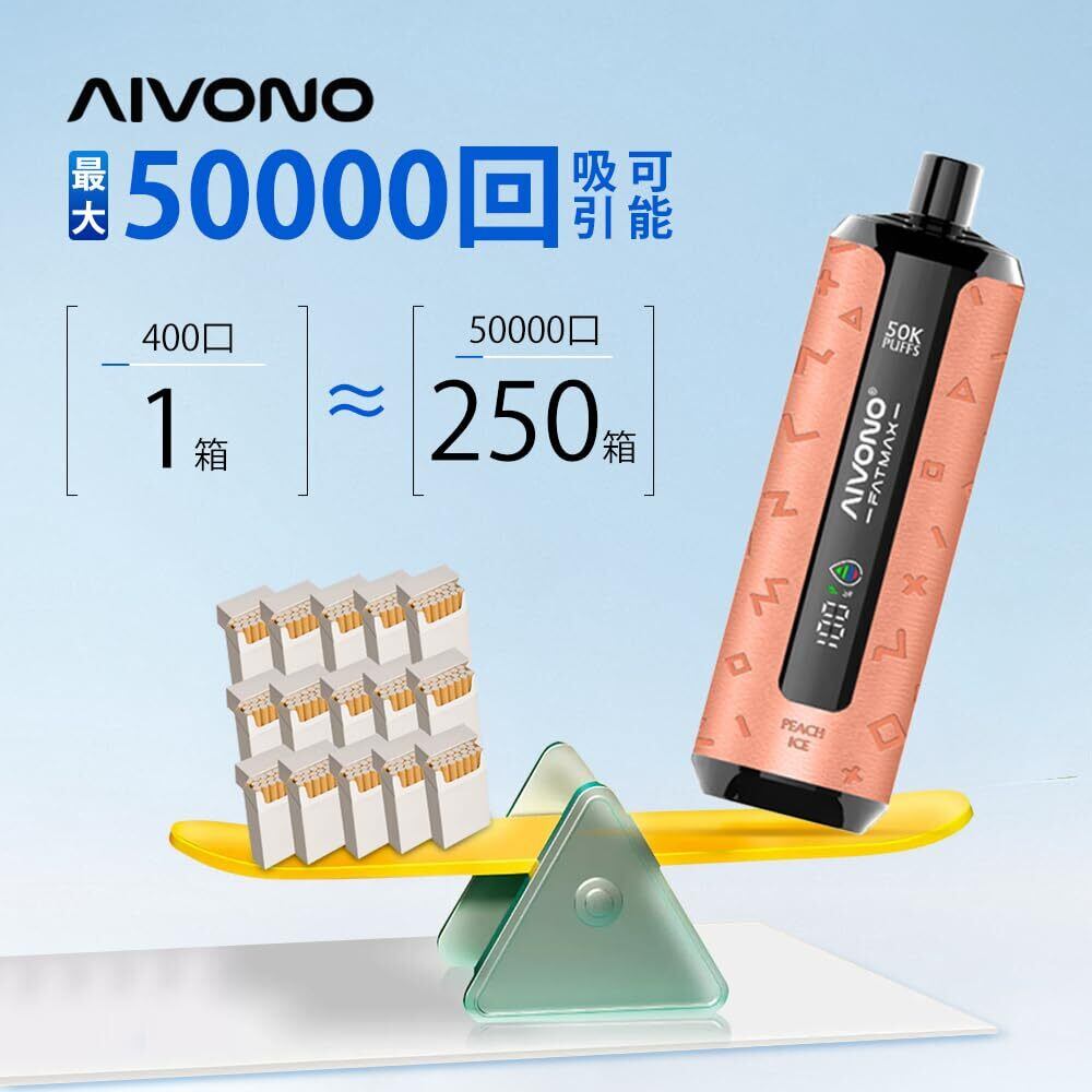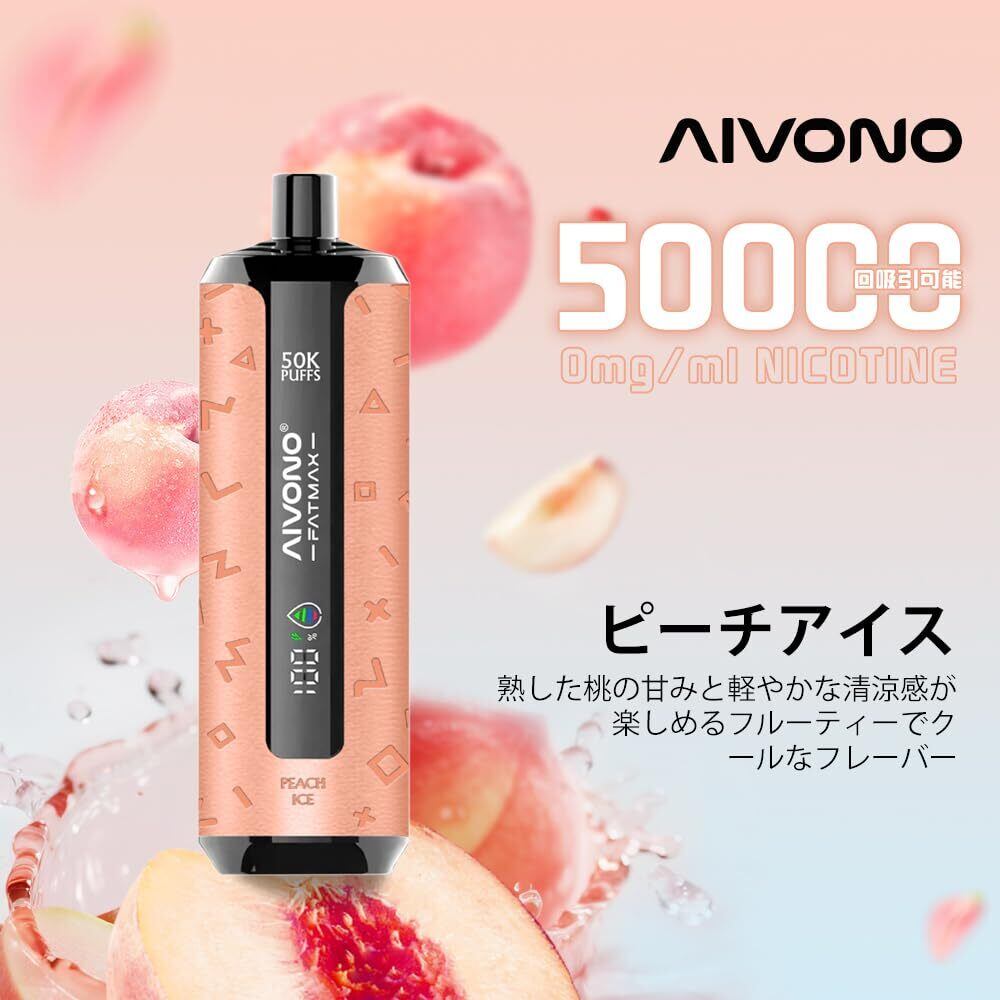 AIVONO 電子タバコ 使い捨て VAPE ベイプ シーシャ 本体 50000回吸引可能 LEDディスプレイ搭載 爆煙 800mAhバッテリー 大容量リキッド 持ち運び 水蒸気タバコ 禁煙サポート ニコチンなし タールなし 禁煙パイポ 充電式 Type-C充電 メッシュコイル搭載 10種類フレーバー (ピーチアイス) | kki