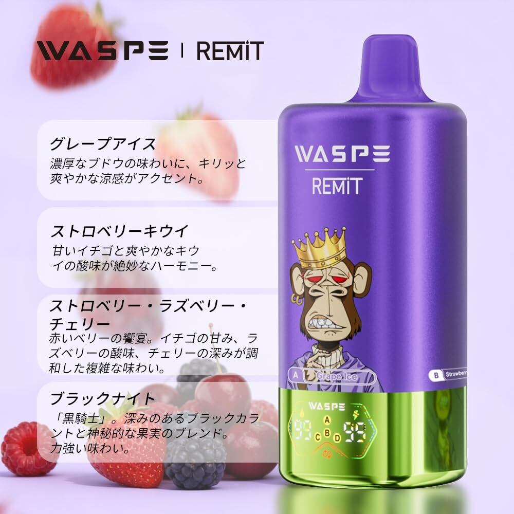 電子タバコ 使い捨て Remit & WASPE 4in1 100,000回吸引可能 大容量リキッド メッシュコイル 持ち運びシーシャ VAPE ベイプ本体 650mAh Type-C充電 LED表示 爆煙 人気フレーバー ニコチンなし タール無し (グレープアイス&ストロベリーキウイ&ストロベリーラズベリーチェリー&ブラックナイト) | kki