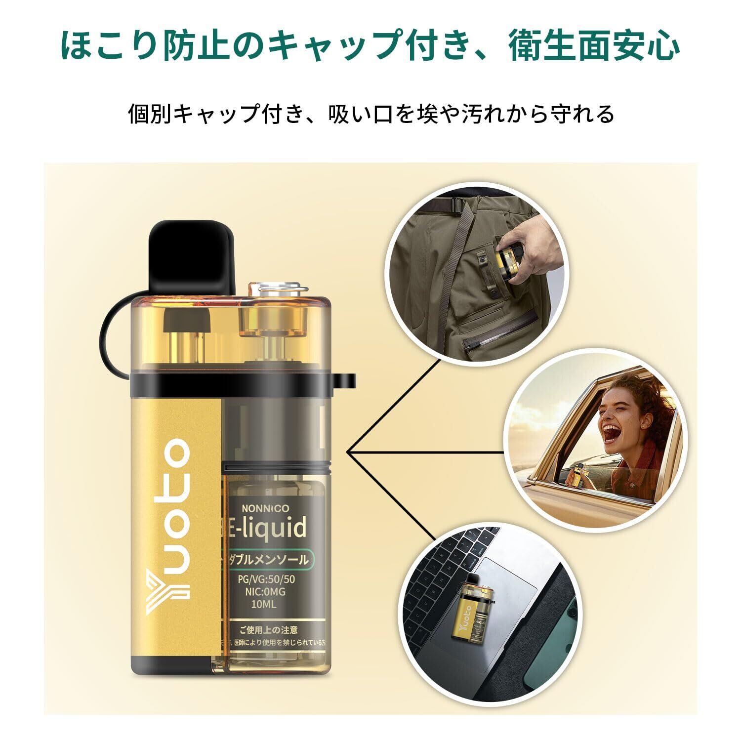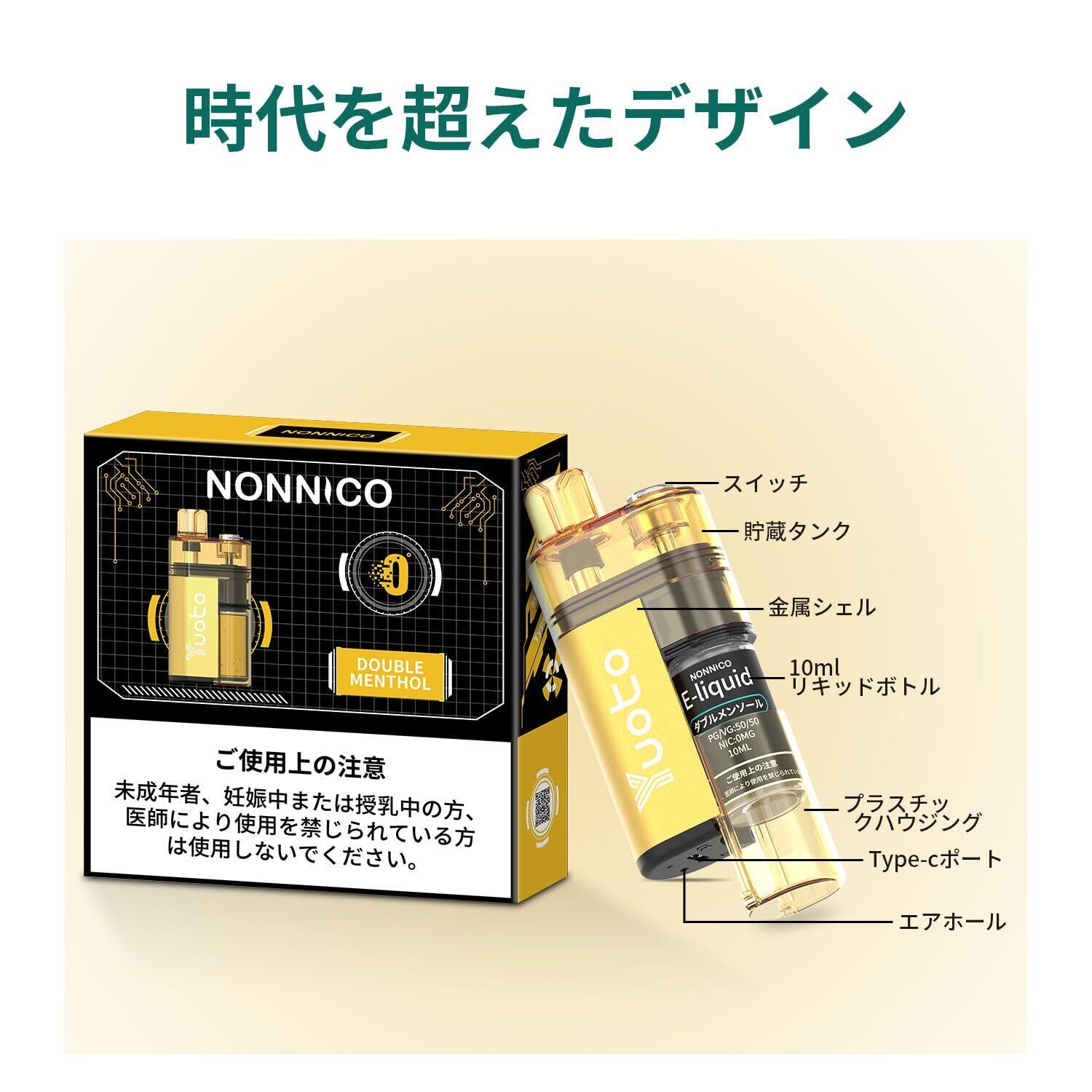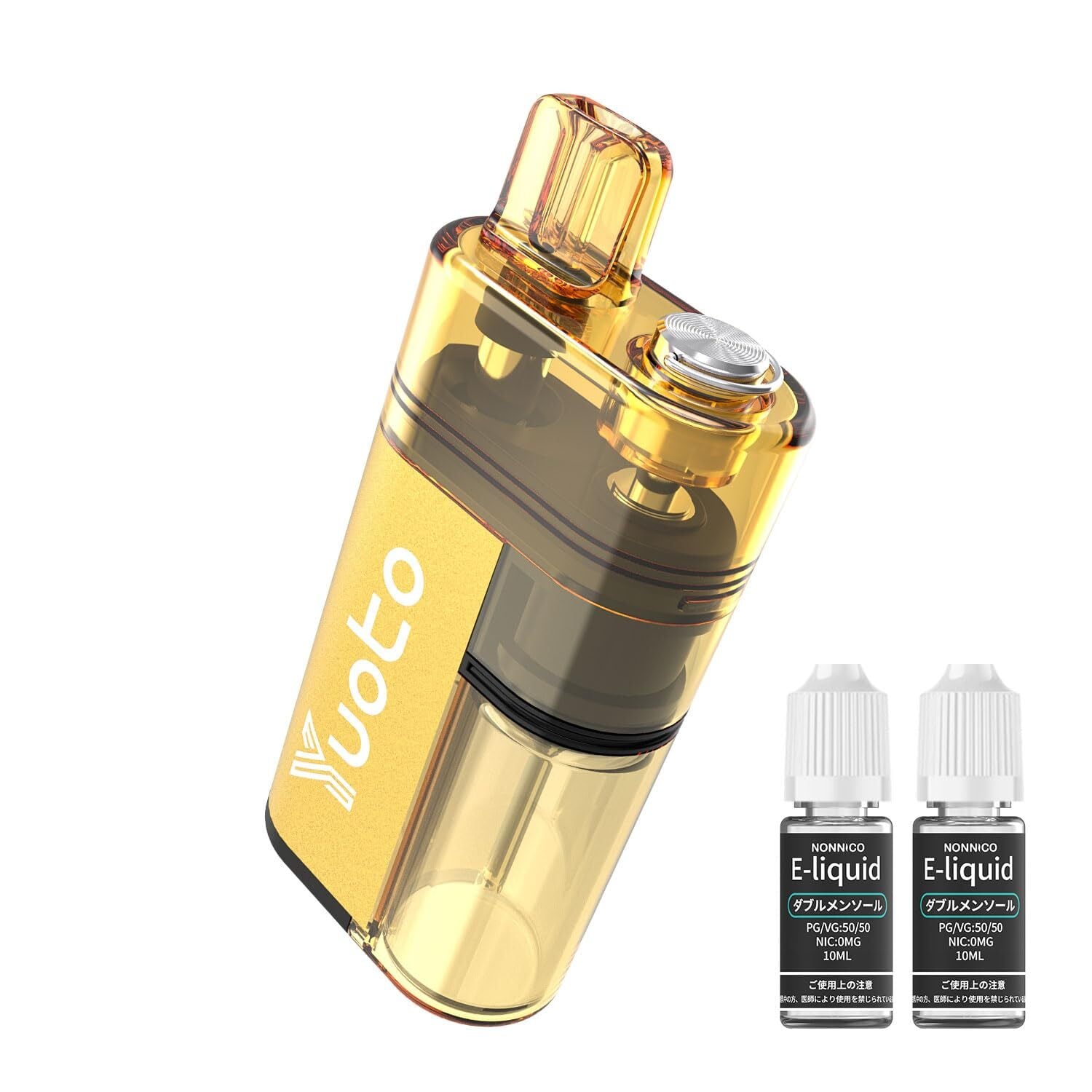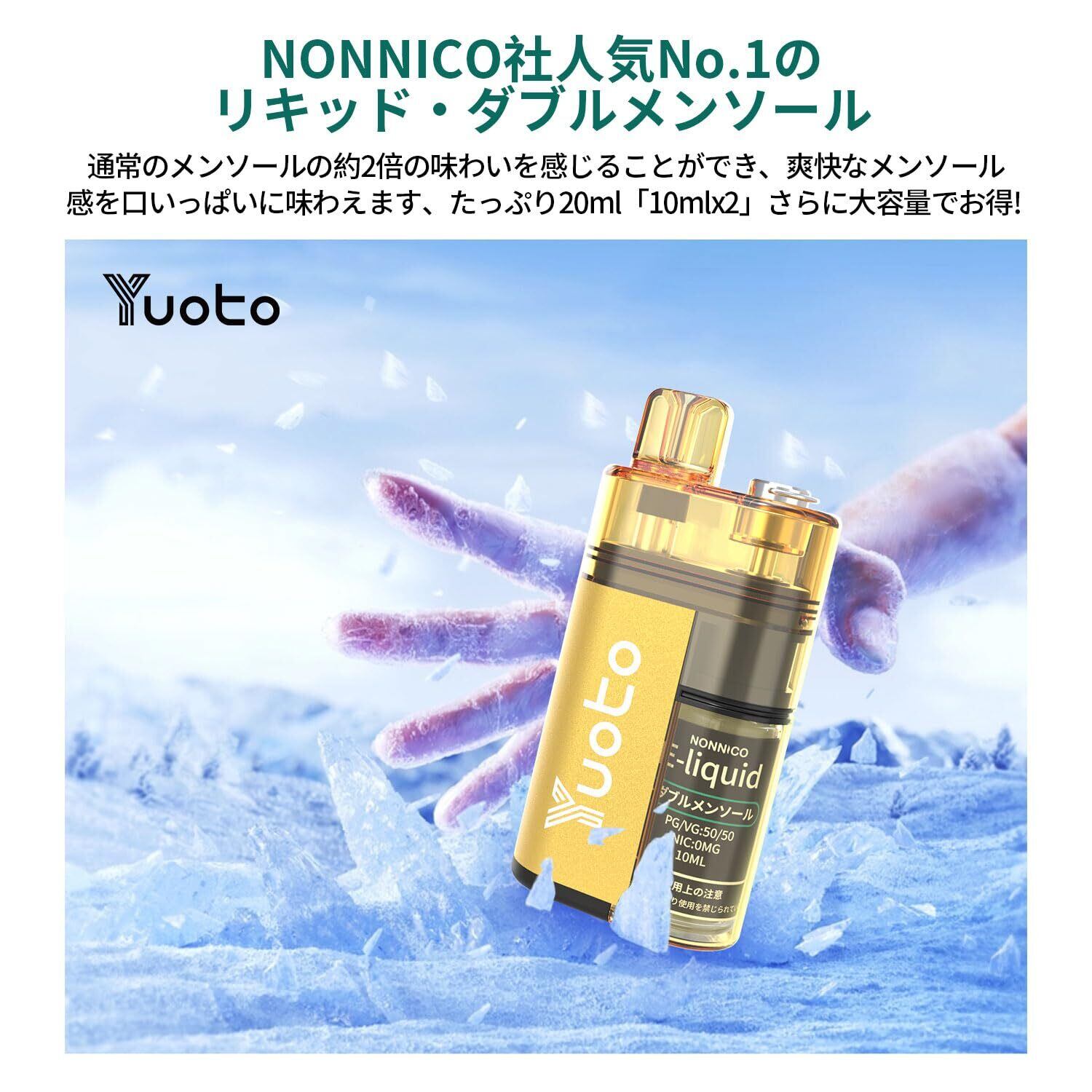Yuoto 電子タバコ vape シーシャ 本体 18000回吸引可能 ベイプ 持ち運び 禁煙グッズ ニコチン タール無し 充電式 TYPE-C充電 フレーバー ダブルメンソール 使い捨て 使い切り 爆煙 ベイプ ゴールド本体 10ml*2ボトル【ダブルメンソール】 | kki
