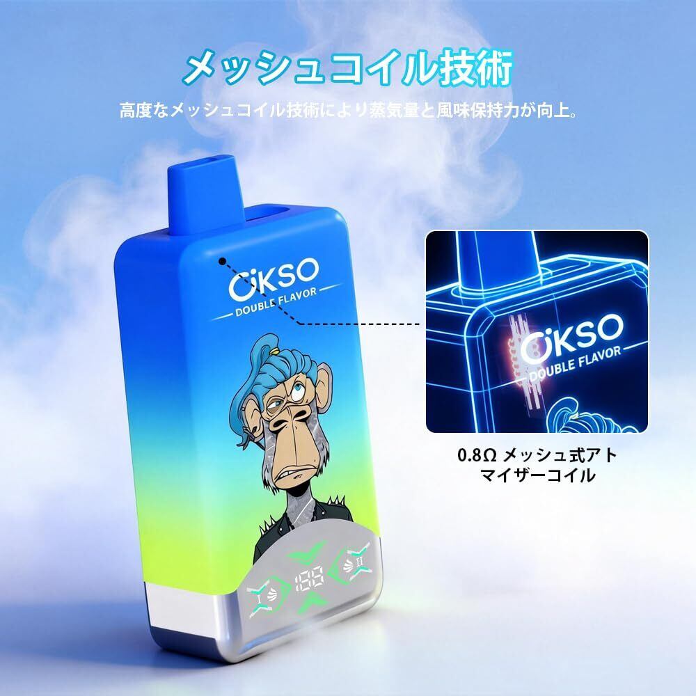 【1本で2つの味】 電子タバコ 使い捨て OKSO 60000回吸引可能 シーシャ 持ち運び ベイプ 爆煙 Vape 水蒸気タバコ LEDディスプレイ 禁煙パイポ Type-C充電式 特製リキッド 禁煙サポート ニコチンなし タールなし (ブルーベリーラズベリーレモネード & リンゴもも) | kki