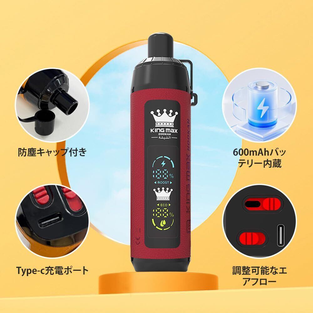 【2025新作】 King Max Hookah ディスポーザブル電子タバコ 15000回吸引 22ml大容量リキッド 快速充電Type-C エルゴノミックマウスピース 15種類豊富フレーバー 爆煙仕様 ニコチンゼロ タールなし 初心者おすすめ 上級者も満足 コンパクト 持ち運び便利 (スイカ・バブルガム) | kki
