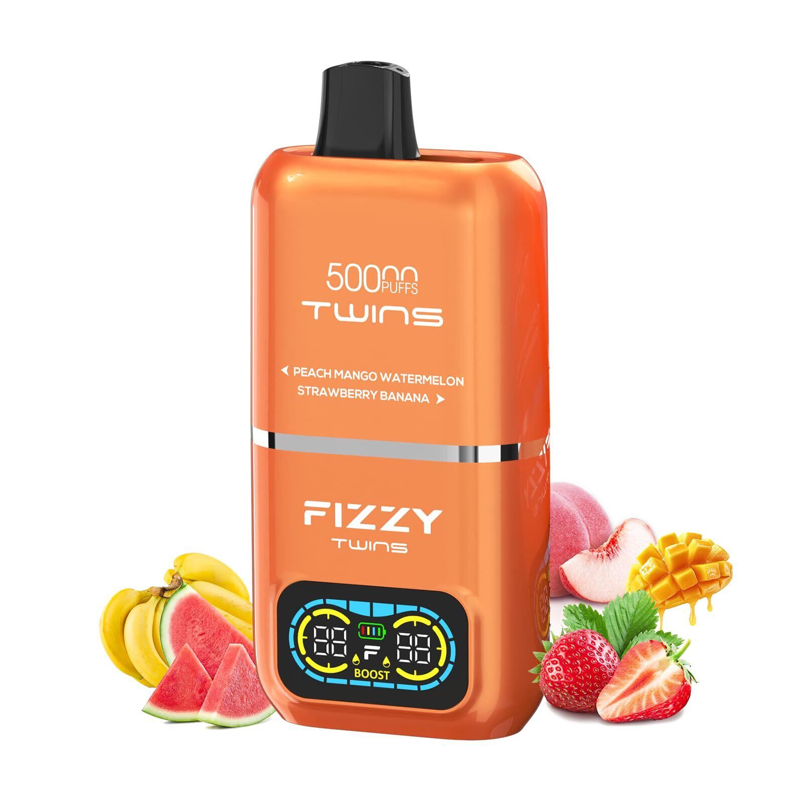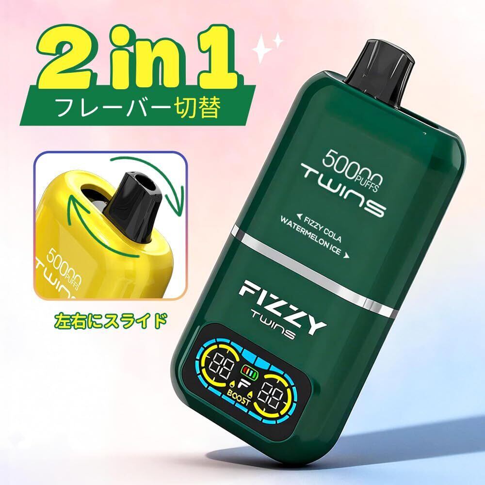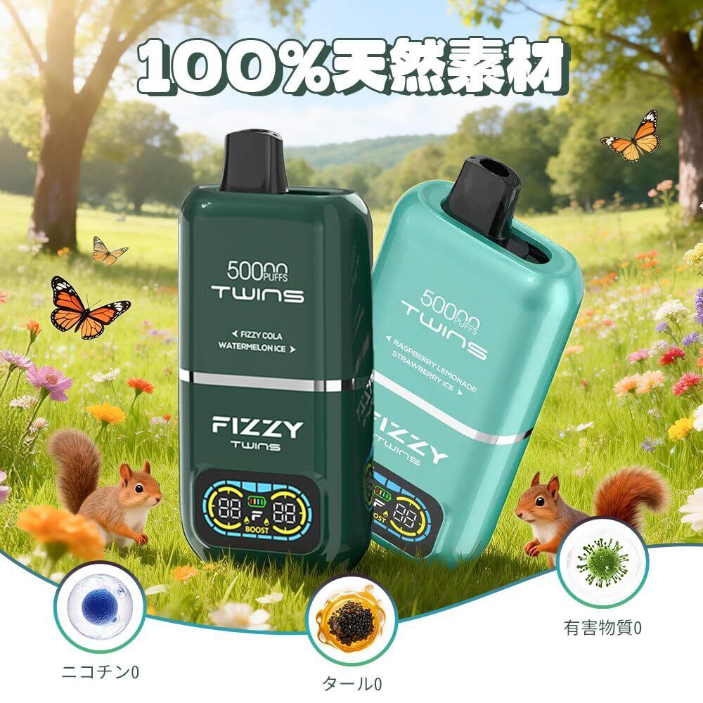 【50000回】 電子タバコ ベイプ 使い捨て Fizzy Twins 50000回吸引 爆煙 本体 水蒸気タバコ 禁煙パイポ 禁煙グッズ シーシャ 持ち運び 充電式 850mAh Type-C充電 ニコチン タール無し (ピーチマンゴー スイカ&ストロベリーバナナ) | kki