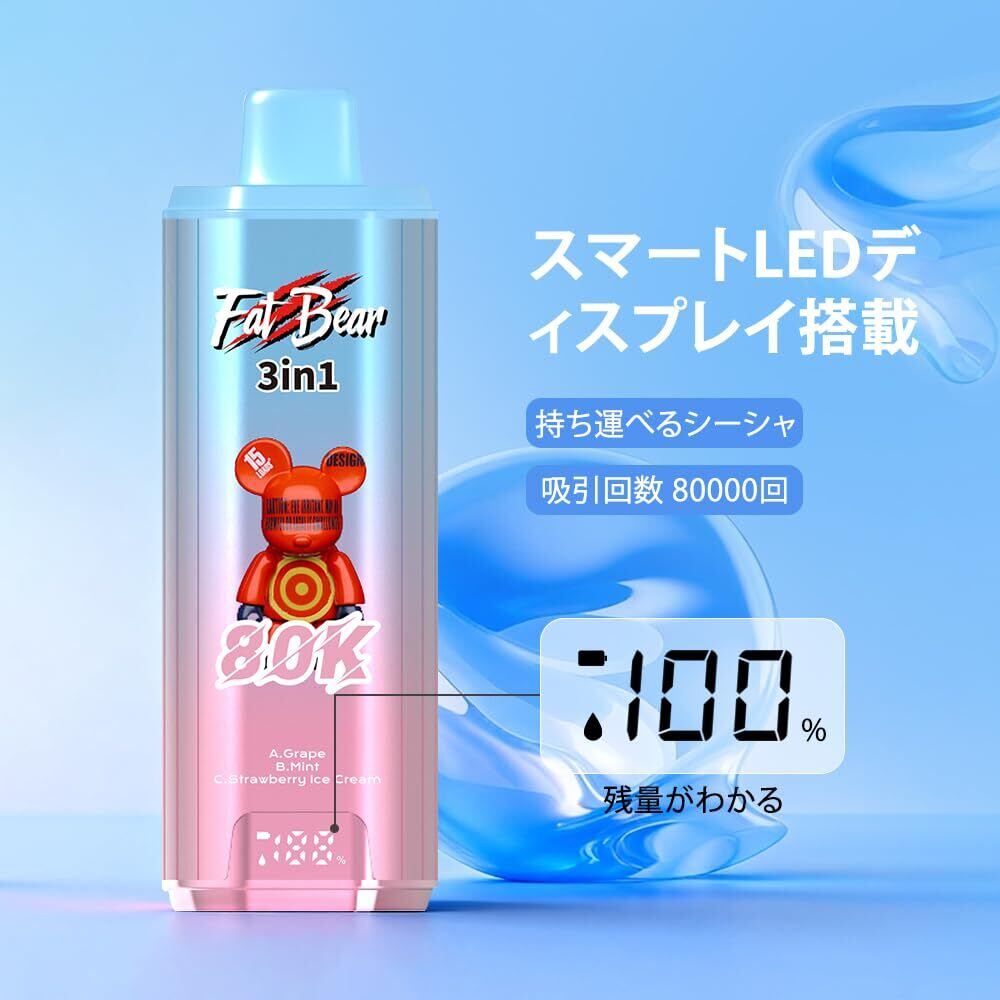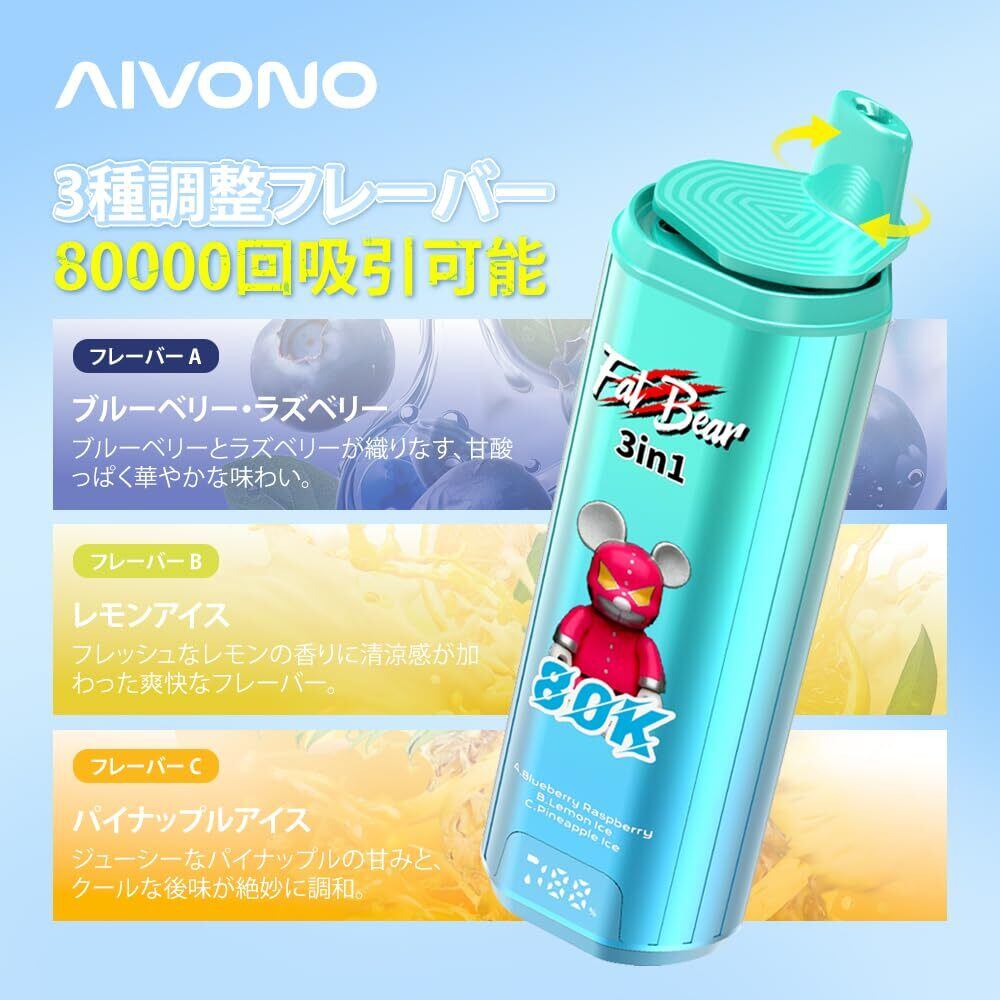 使い捨て 電子タバコ AIVONO ベイプ シーシャ本体 80000パフス 3in1 デュアルメッシュコイル LEDディスプレイ搭載 持ち運び便利 VAPE 600mAh Type-C充電 禁煙グッズ ニコチンなし タール無し 人気フレーバー (ブルーベリー·ラズベリー&レモン·アイス&パイナップル·アイス) | kki