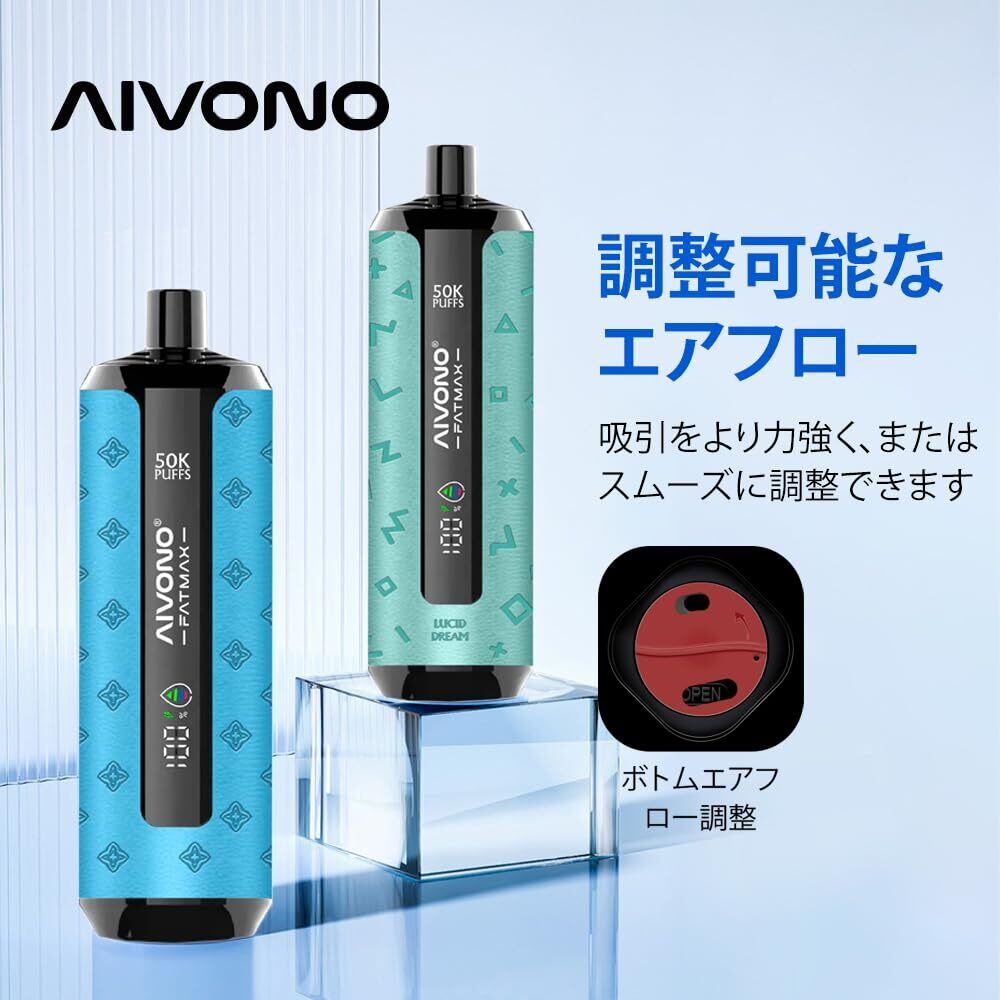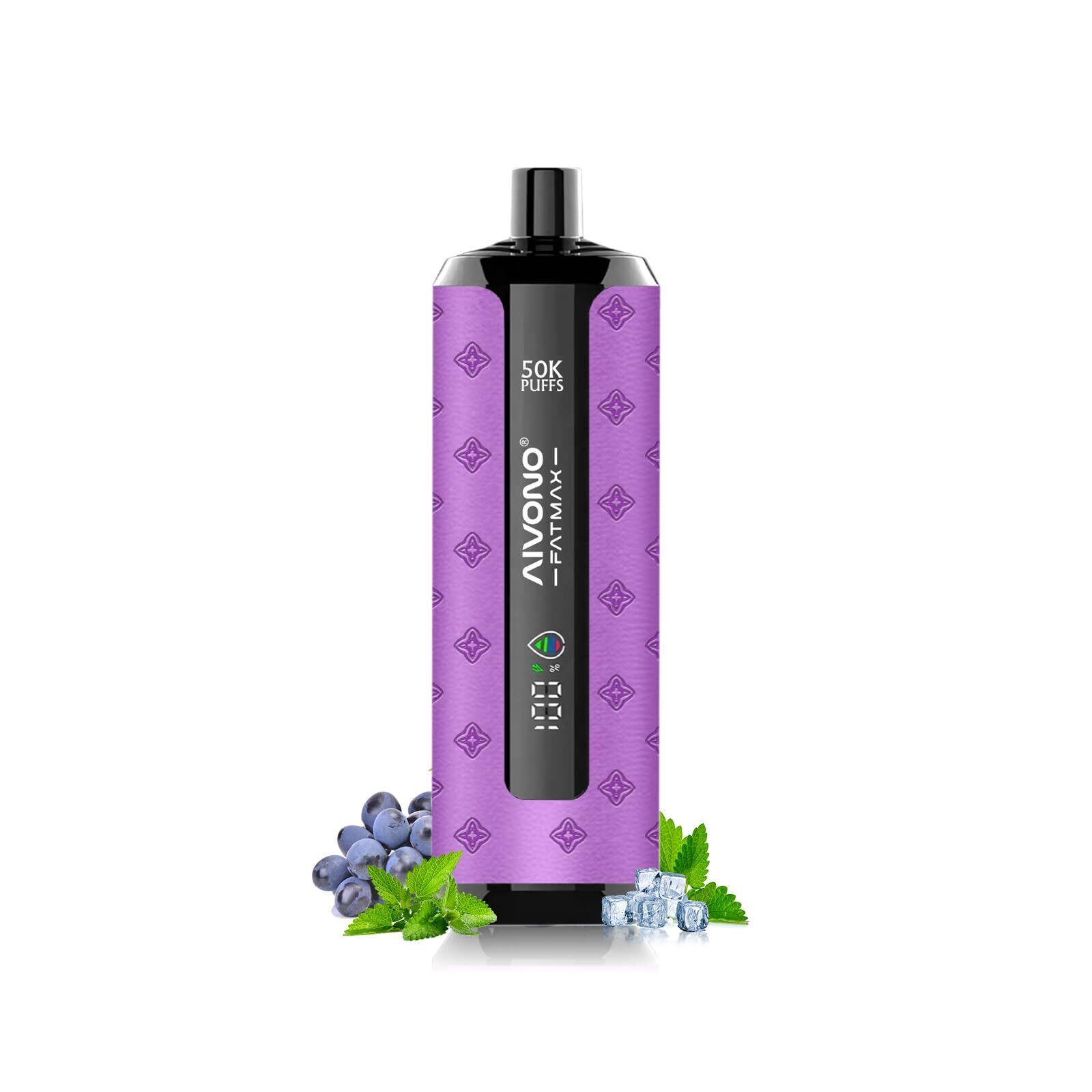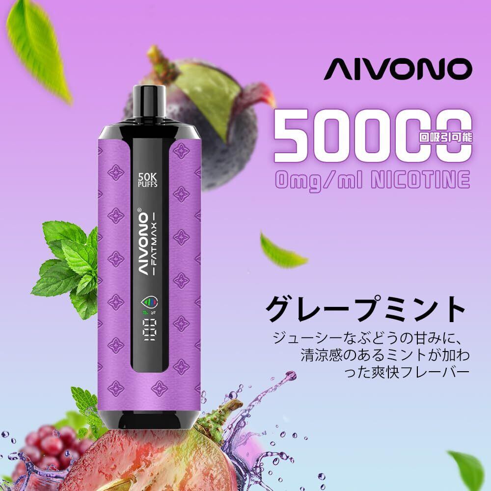 電子タバコ 使い捨て 50000回吸引可能 AIVONO シーシャ 持ち運び ベイプ 爆煙 LEDディスプレイ 800mAhバッテリー Type-C充電 禁煙パイポ10風味セット ニコチンなし タール無し (グレープミント) | kki
