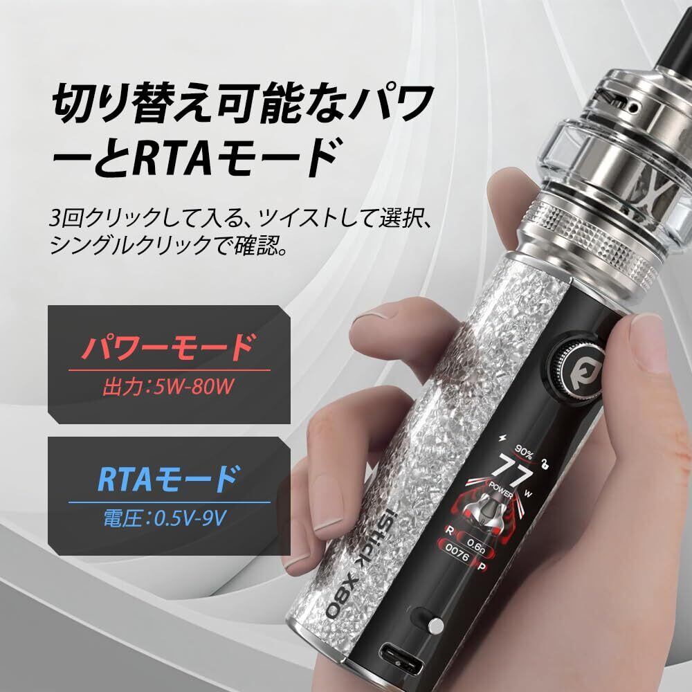 【X80】電子タバコ 本体のみ Eleaf iStick X80 モッド 本体(イーリーフ アイスティック)510規格対応 3200mAh 大容量バッテリー 80W最大出力 Type-C急速充電 爆煙 シーシャ 持ち運びvape ベイプ ニコチンなし リキッド無し (Silver) | kki