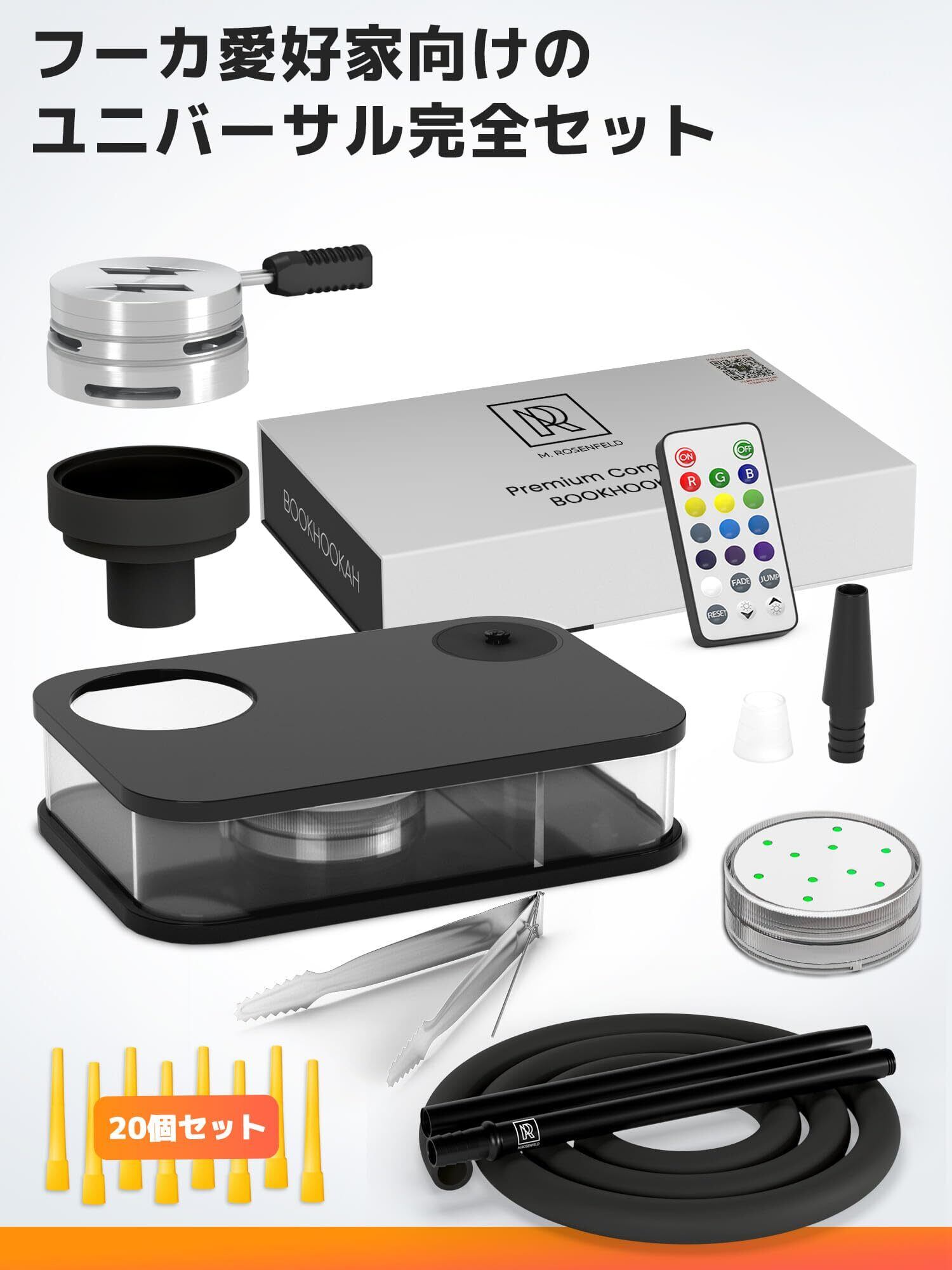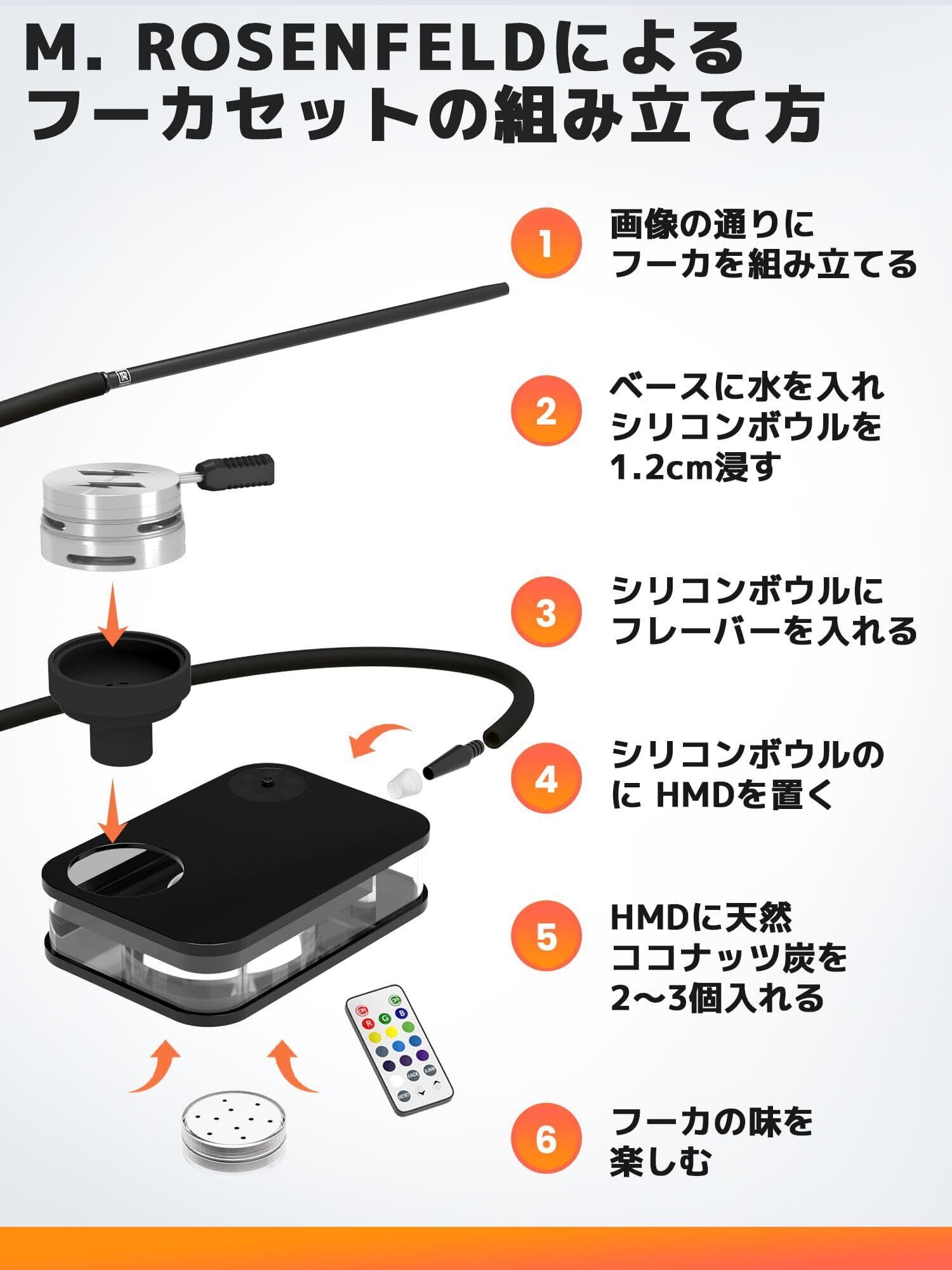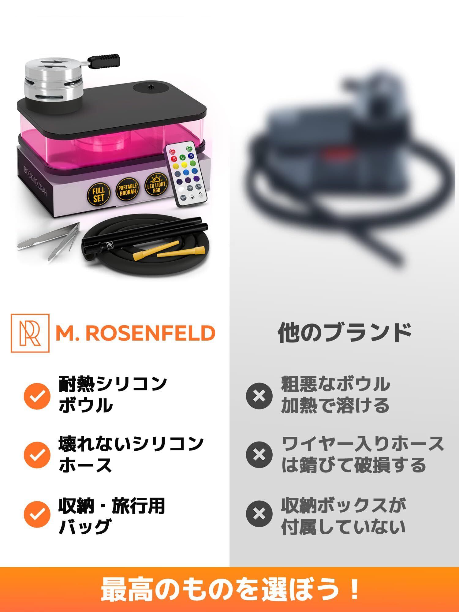 シーシャ 本体 ポータブル シーシャ セット 水タバコ ブラックデザイン hookah set travel shisha マグネットケース&キャリーバッグ付き シーシャ 台 LEDライト全12色 耐熱シリコンボウルとアクリルベース フルセット 初心者向け M. ROSENFELD | kki