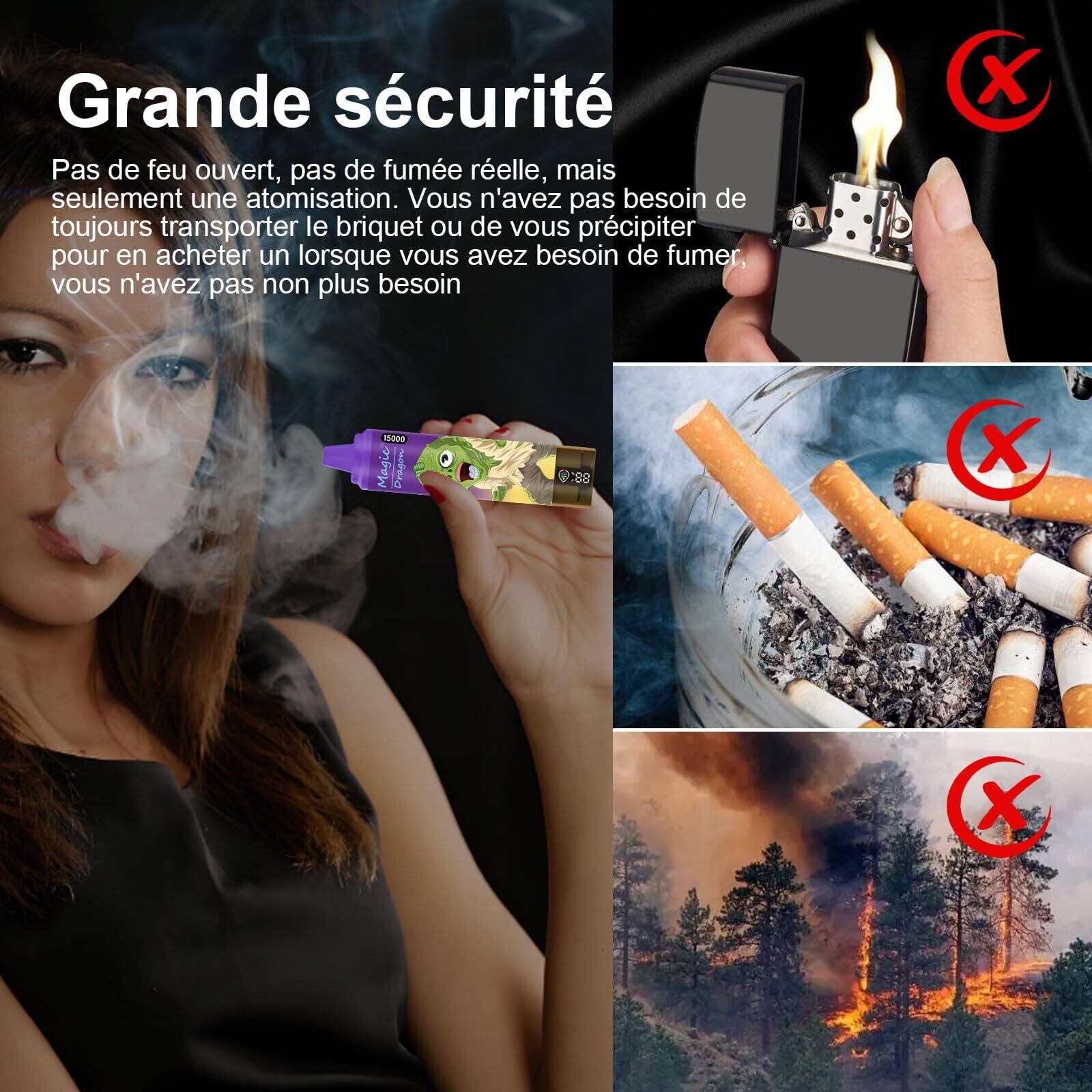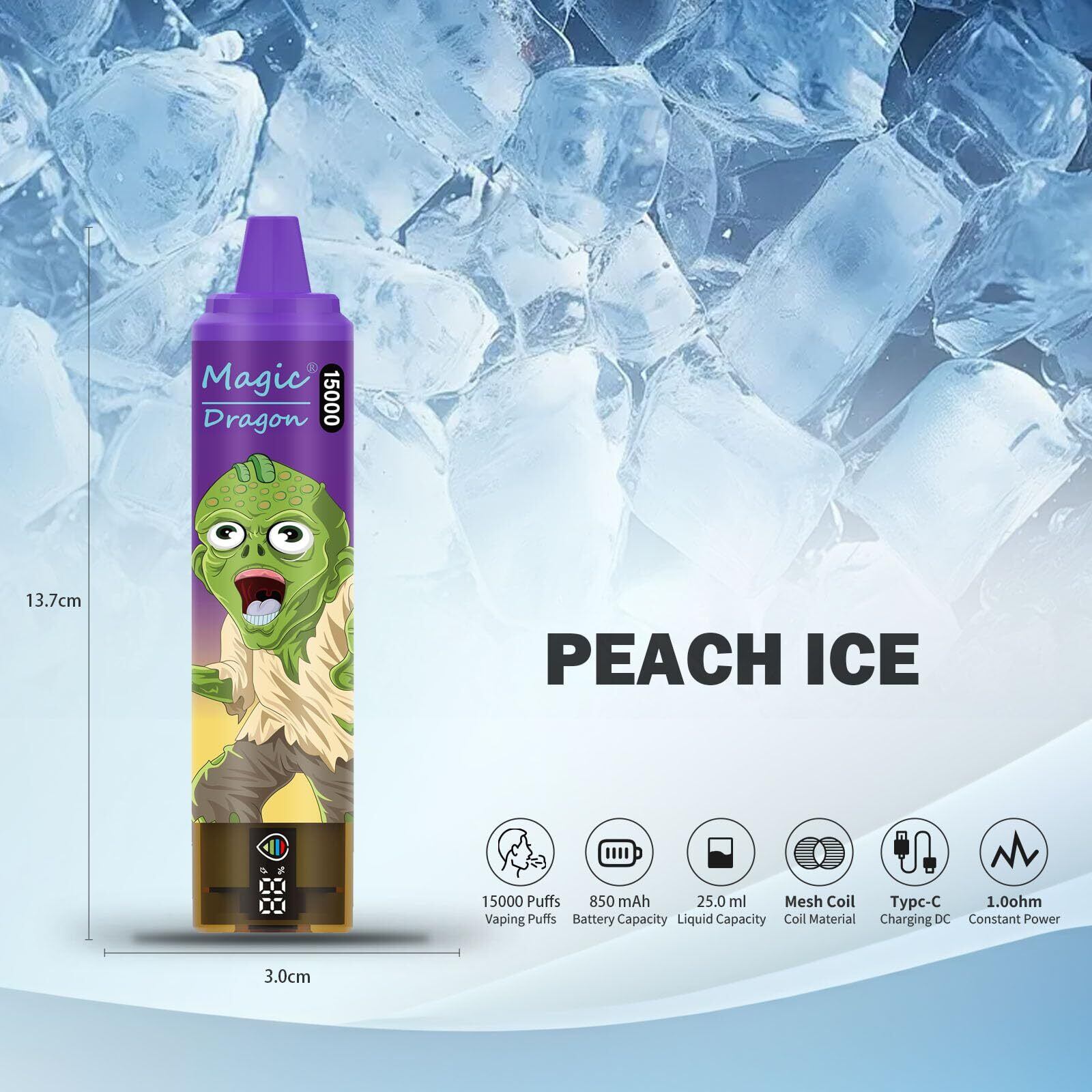 15000 パフ 電子タバコ 充電式 シーシャ 持ち運び 水タバコ ニコチンなし ベイプ 水蒸気タバコ 調整可能な煙 ビジュアルディスプレイスクリーン (ピーチ アイス)