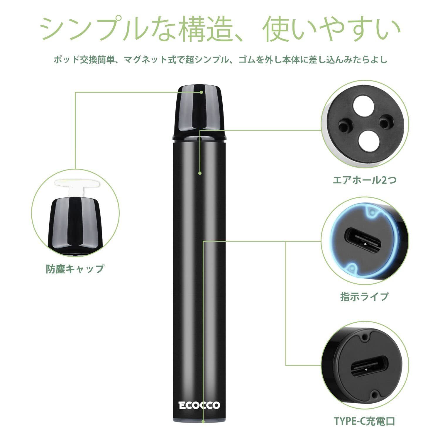 ECOCCO 電子タバコ ベイプ バッテリー 本体 ポッド VAPE POD ミニシーシャ ブルーペリー Blueberries berry フレーバーポッド M16交換用カートリッジ 吸引回数約450回/個 スターターキット 取扱簡単 持ち運びに便利 爆煙 水蒸気タバコ 禁煙サポート ニコチン・タールなし コンパクト M16型 | kki