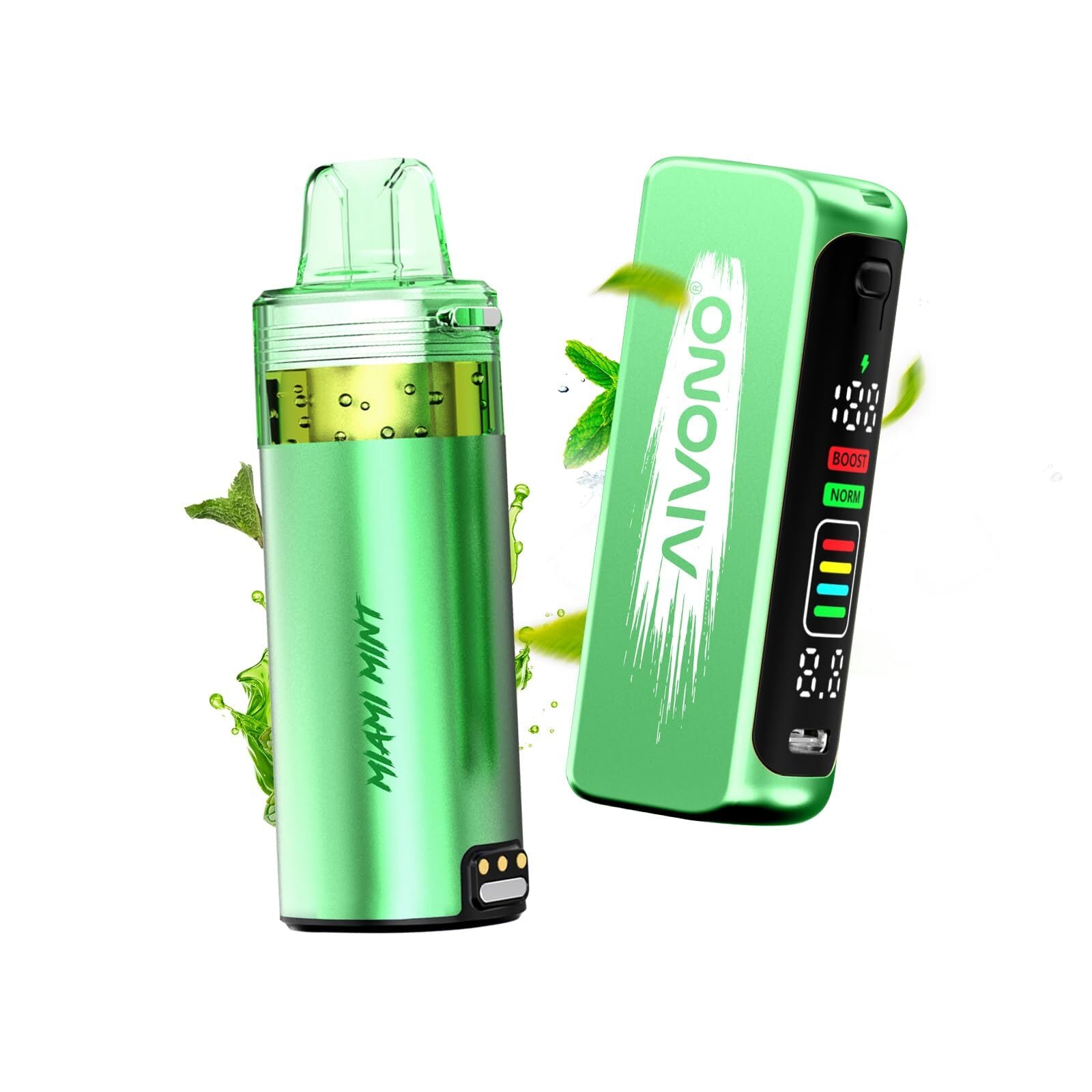 AIVONO 電子タバコ 使い捨て 30000回吸引可能 シーシャ 持ち運び 10フレーバー LEDディスプレイ搭載 爆煙 NORMAL/BOOSTモード デュアルメッシュコイル エアフロ調節 850mAhバッテリー Type-C充電可能 水蒸気たばこ ベイプ vape 禁煙サポート タール無し ニコチンなし (マイアミ·ミント) | kki