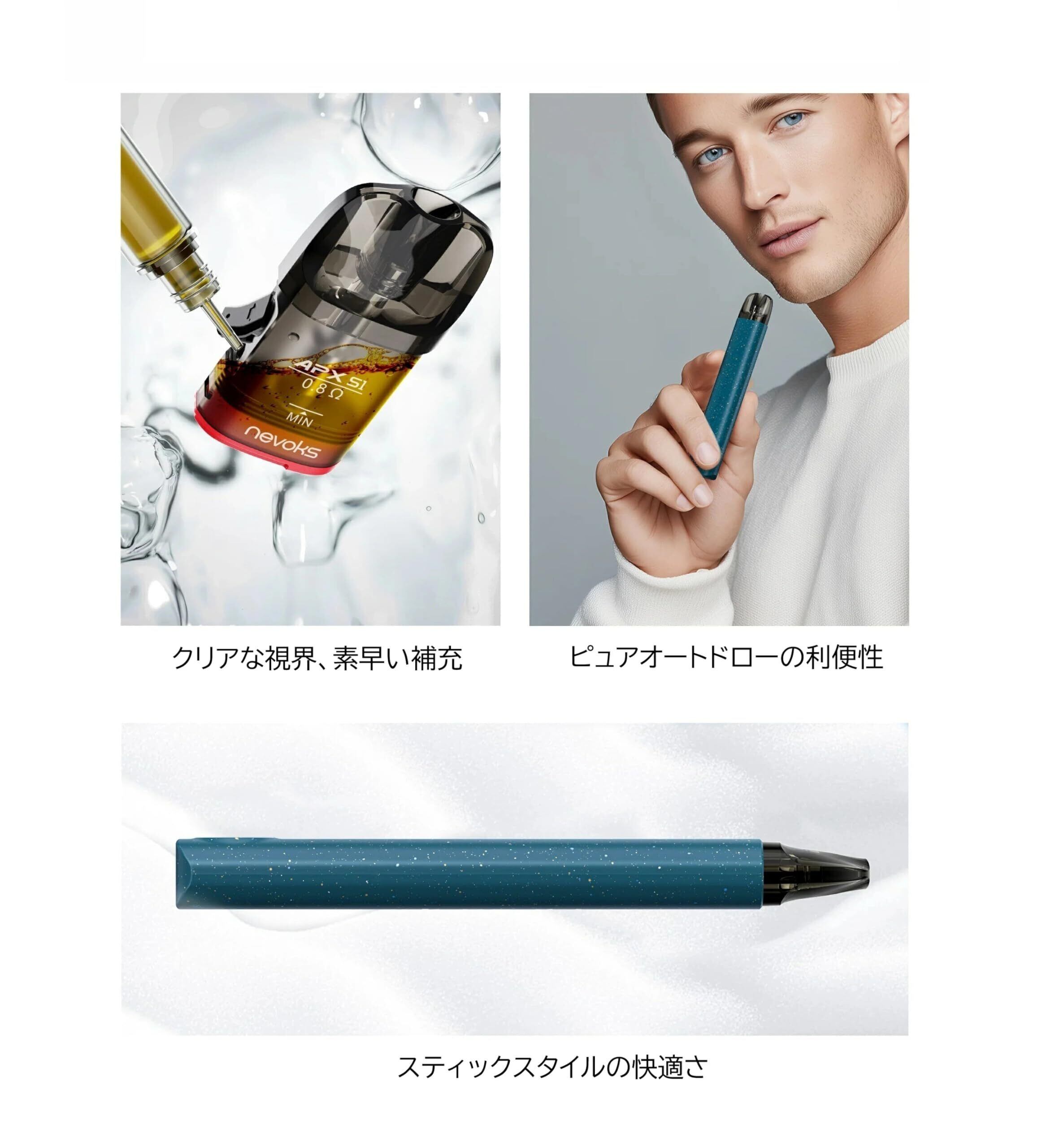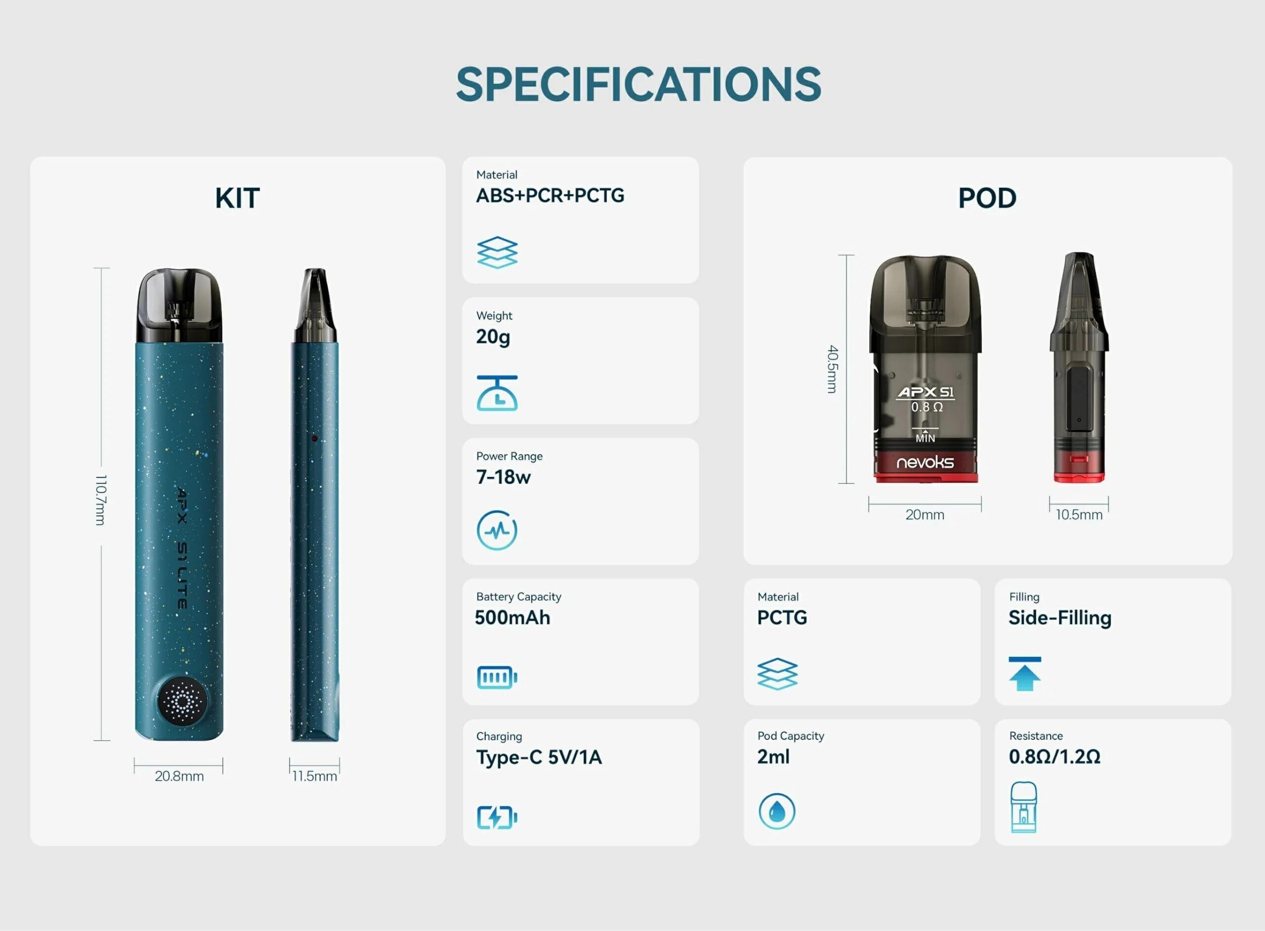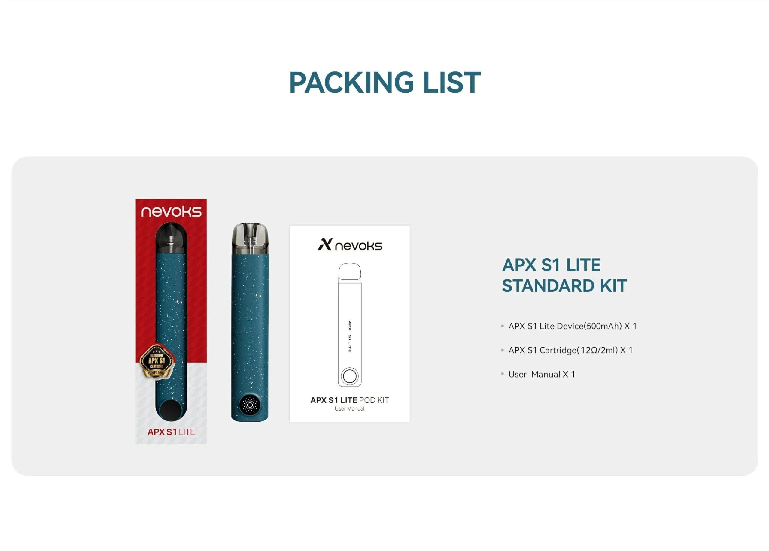 Nevoks APX S1 Lite Pod Kit 500mAh 2ml ネボックス エスワンライト スターターキット 電子タバコ ベイプ 本体 vape 持ち運び シーシャ 水蒸気 オートドロー オートパフ コスパ 充電式 水タバコ 持ち運び 携帯 コンパクト 軽い 軽量 スティック 液体なし ニコチン0 タール0 [G-23] (ティールブルー) | kki