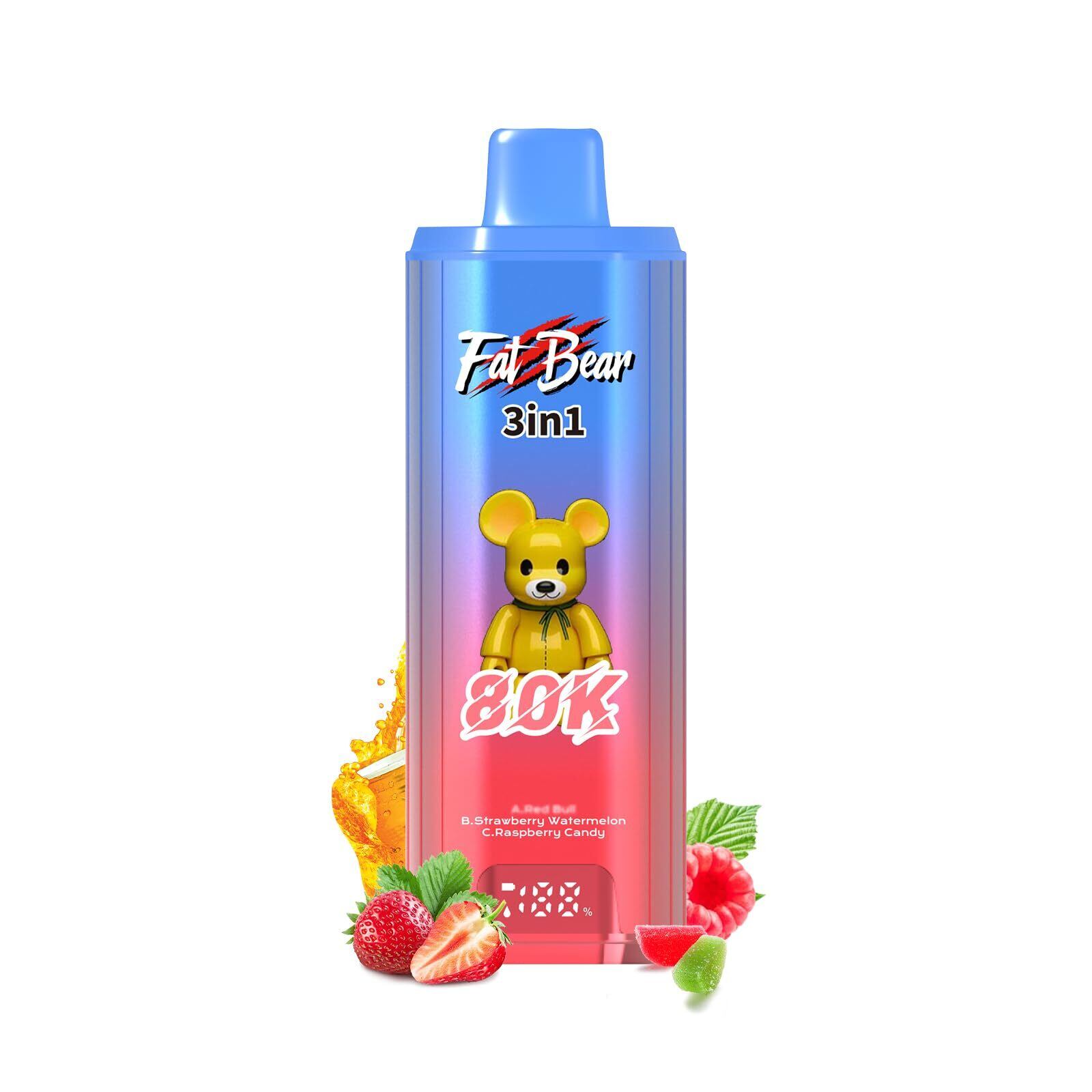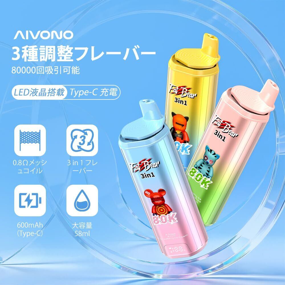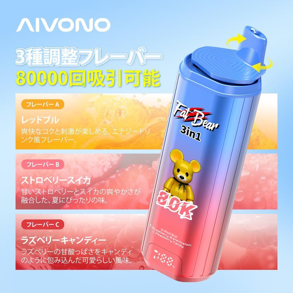 【AIVONO 80000】電子タバコ 使い捨て ベイプ本体 3in1 80,000回吸引可能 大容量リキッド 爆煙 持ち運びシーシャ VAPE 禁煙グッズ 600mAh 充電式Type-C充電対応 LED表示 メッシュコイル搭載 人気フレーバー ニコチンなし タール無し (レッドブルエナジー&ストロベリースイカ&ラズベリーキャンディ) | kki
