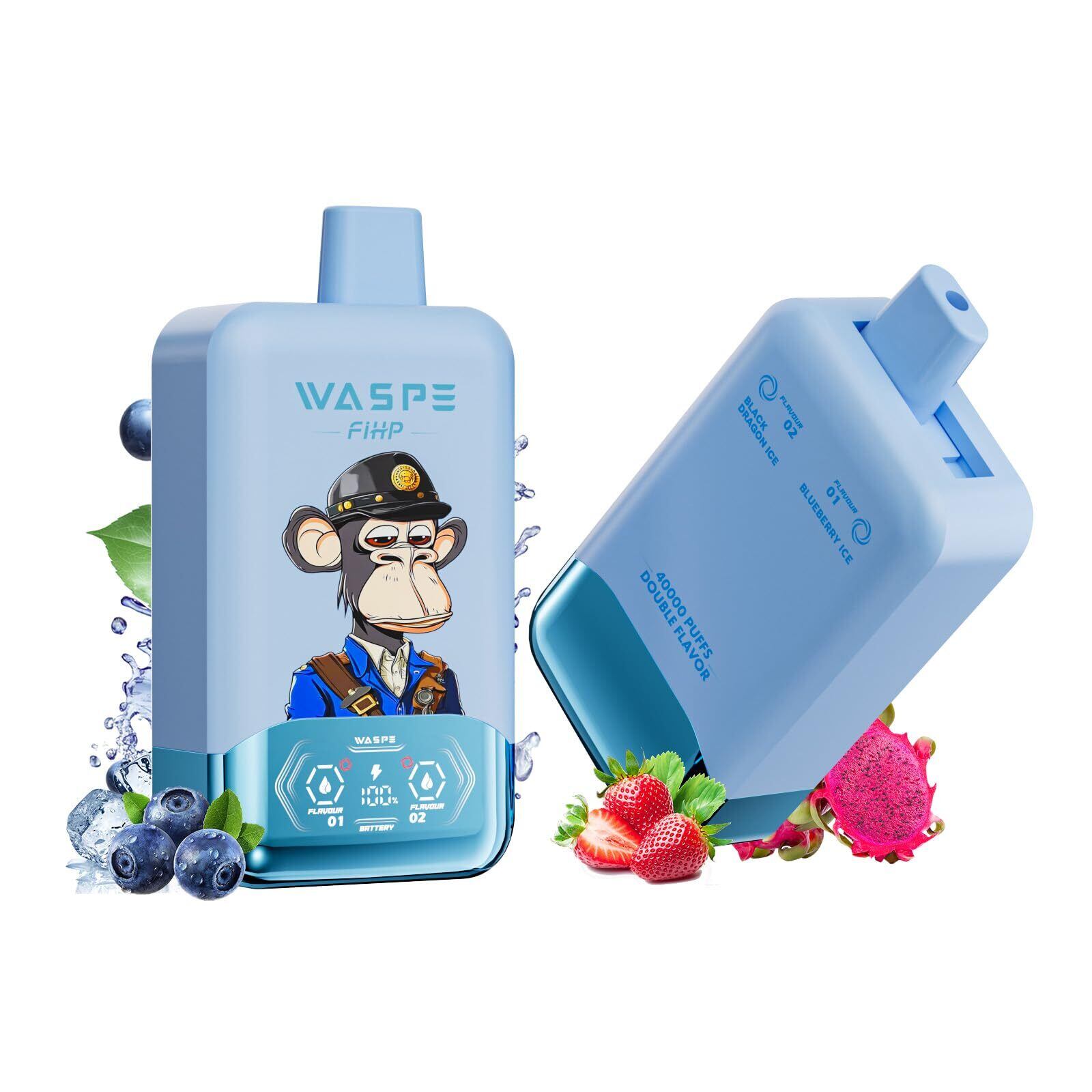 【WASPE 40000】使い捨て電子タバコ 40,000パフス デュアルメッシュコイル Type-C充電 スマートLED 16フレーバー 人気 タバコ味 ニコチン無しタール無し ベイプ (ブルーベリー氷&ブラックドラゴン氷) | kki