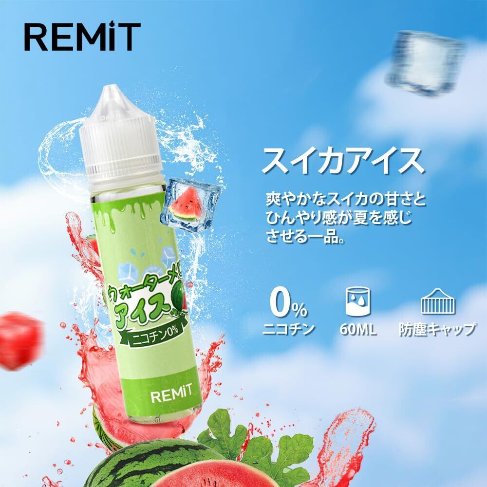 電子タバコ リキッド Remit ベイプ シーシャ vape 60ml 大容量 人気フレーバー 濃厚 キック感 爆煙 持ち運び VG50%:PG50% ノンニコチン タール無し (2本, スイカアイス*2) | kki