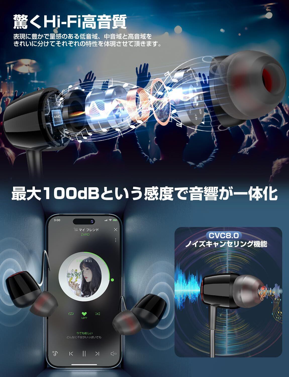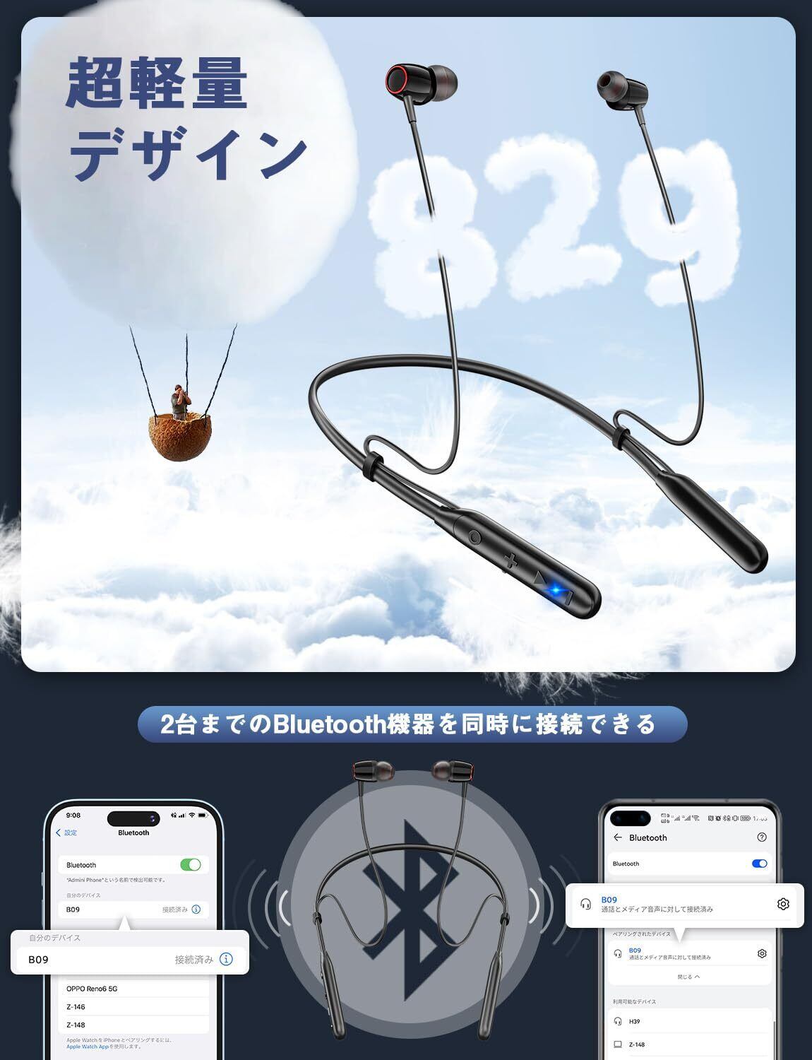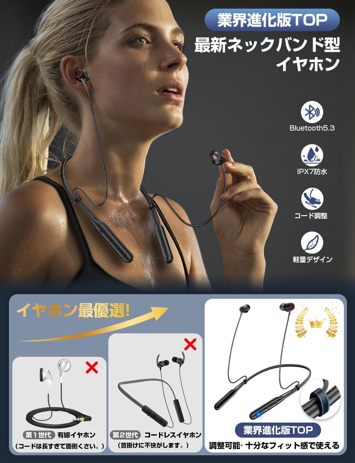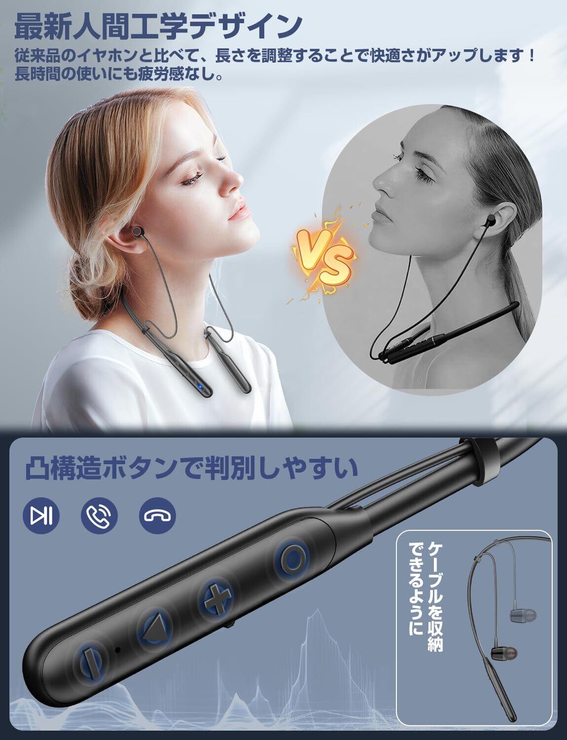 イヤホン Bluetooth【ネックバンド型・コード調整・40時間連続再生】ワイヤレスイヤホン ネックバンド 凸構造ボタン 首掛け ブルートゥースイヤホン CVC8.0ノイズキャンセリング Type-C急速充電 ハンズフリー通話 軽量 イヤフォン マグネット搭載 音量調節 Siri 音楽/WEB会議/ビジネス/通勤通学 技適認証済 日本語説明書(黒) | kki