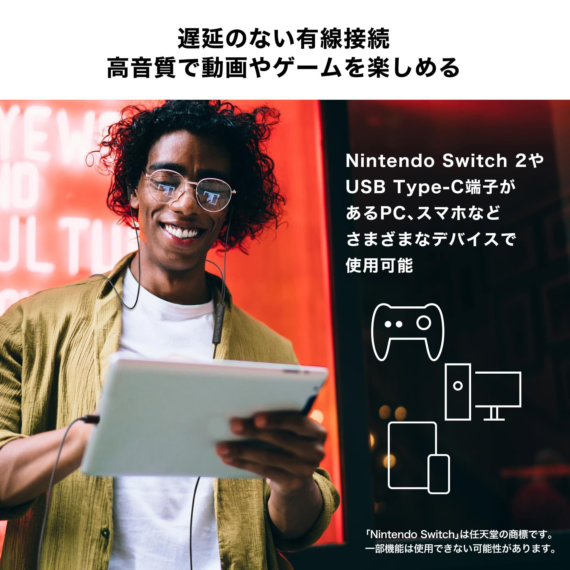 オーディオテクニカ ATH-CKS330NC BK イヤホン 有線 タイプC ノイズキャンセリング 1.2m U型コード 【遅延なし マイク付 リモコン 重低音 密閉型 ⾼⾳質 DAC内蔵 ブラック】 | kki