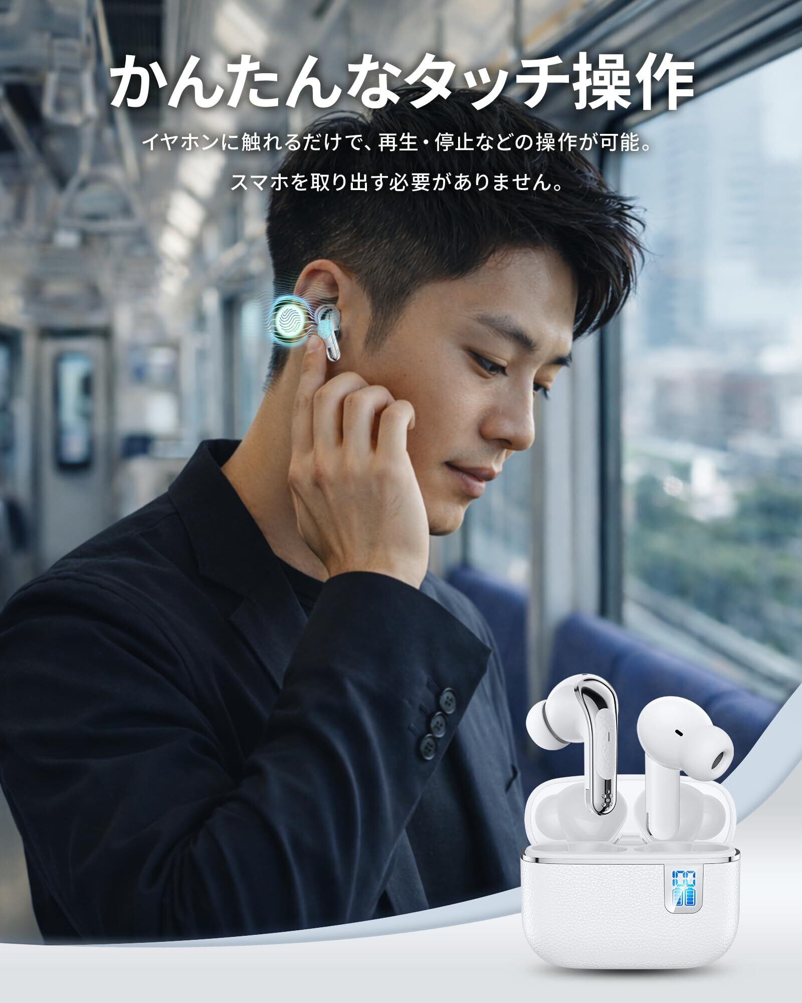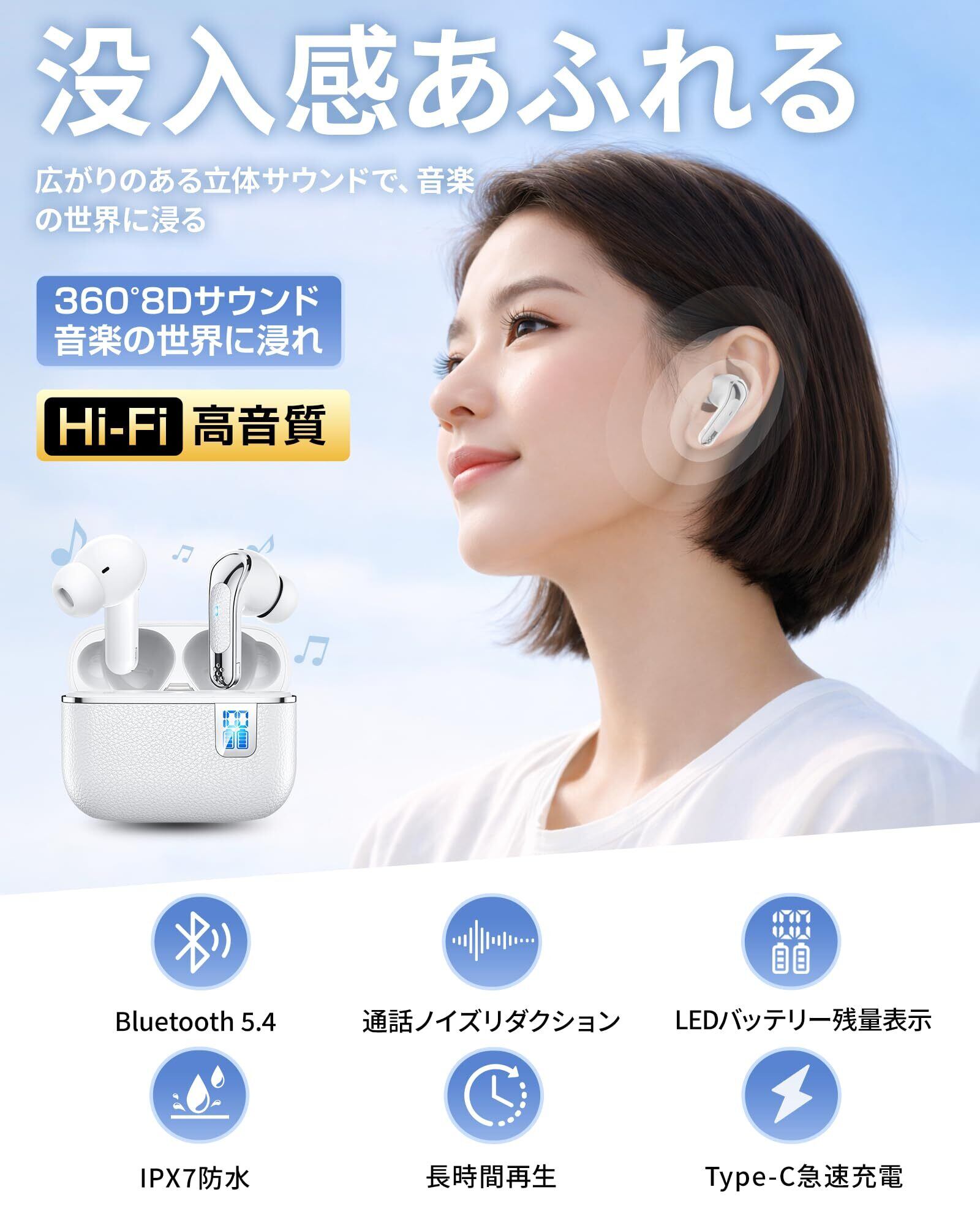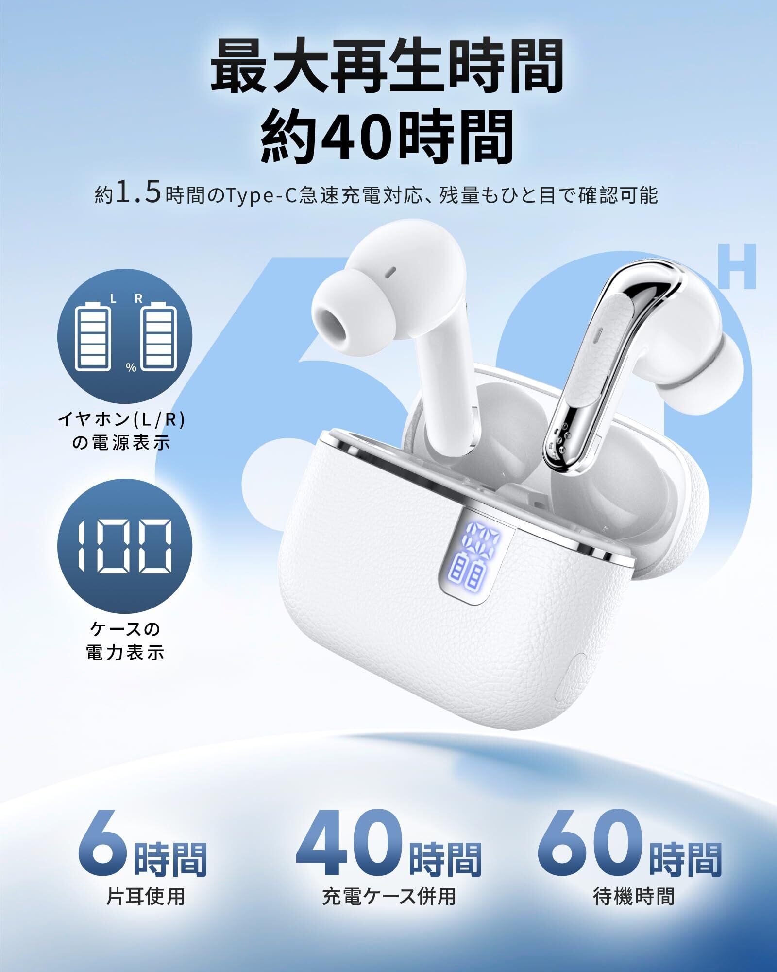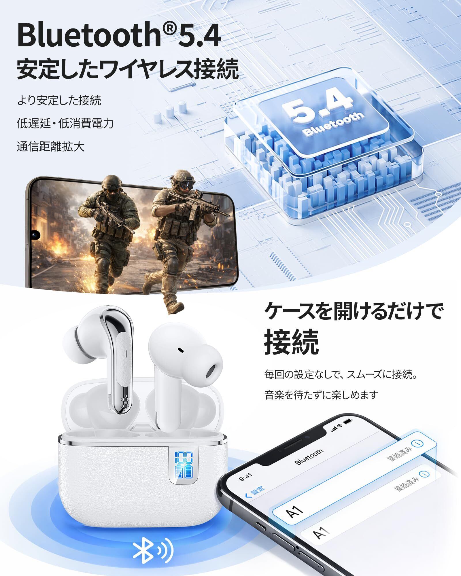 ワイヤレスイヤホン【音質強化モデル】 イヤホン bluetooth 5.4 ENC通話ノイズキャンセリング 小型・軽量 低遅延 60時間連続再生 IPX7防水 自動ペアリング Type-C充電 片耳・両耳対応 iPhone/Android対応 WEB会議 通勤・通学・音楽・スポーツ・ゲーム (白) | kki