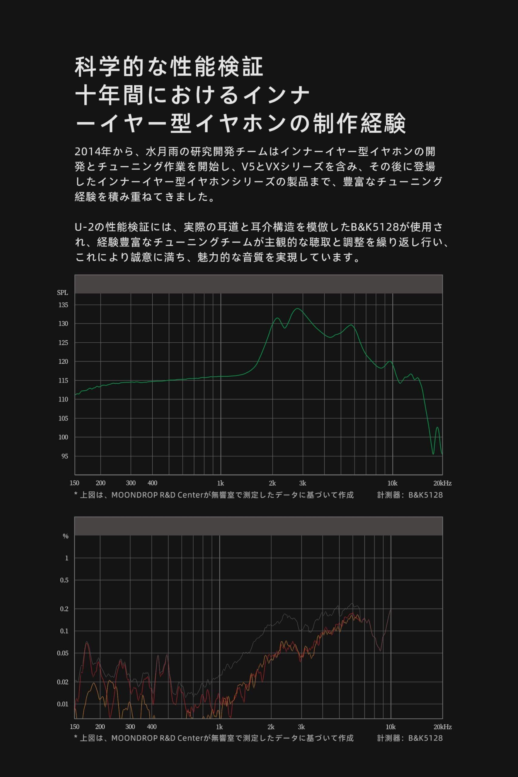 水月雨 Moondrop U-2 インナー イヤー型 有線 モニターイヤホン 14.8mm大型ダイナミックドライバ ポリエステル柔軟エッジ複合振膜 3.5mmステレオプラグ