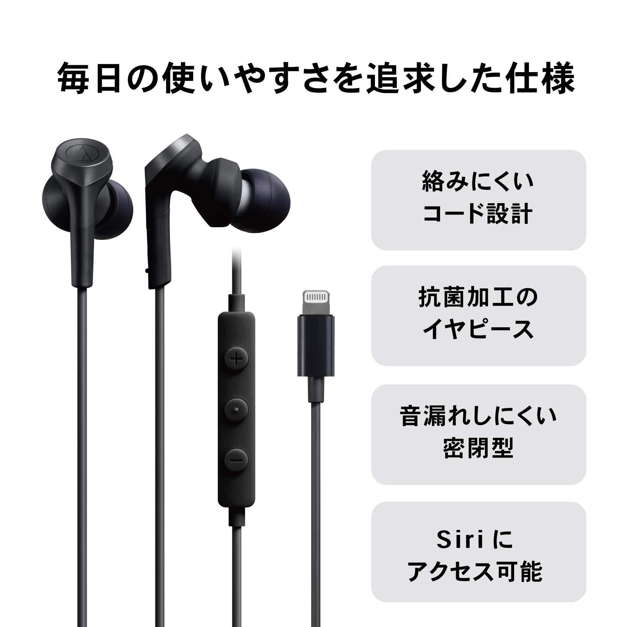 オーディオテクニカ ATH-CKS330Li BK イヤホン 有線 1.2m Lightning マイク付き iphone 重低音 ブラック