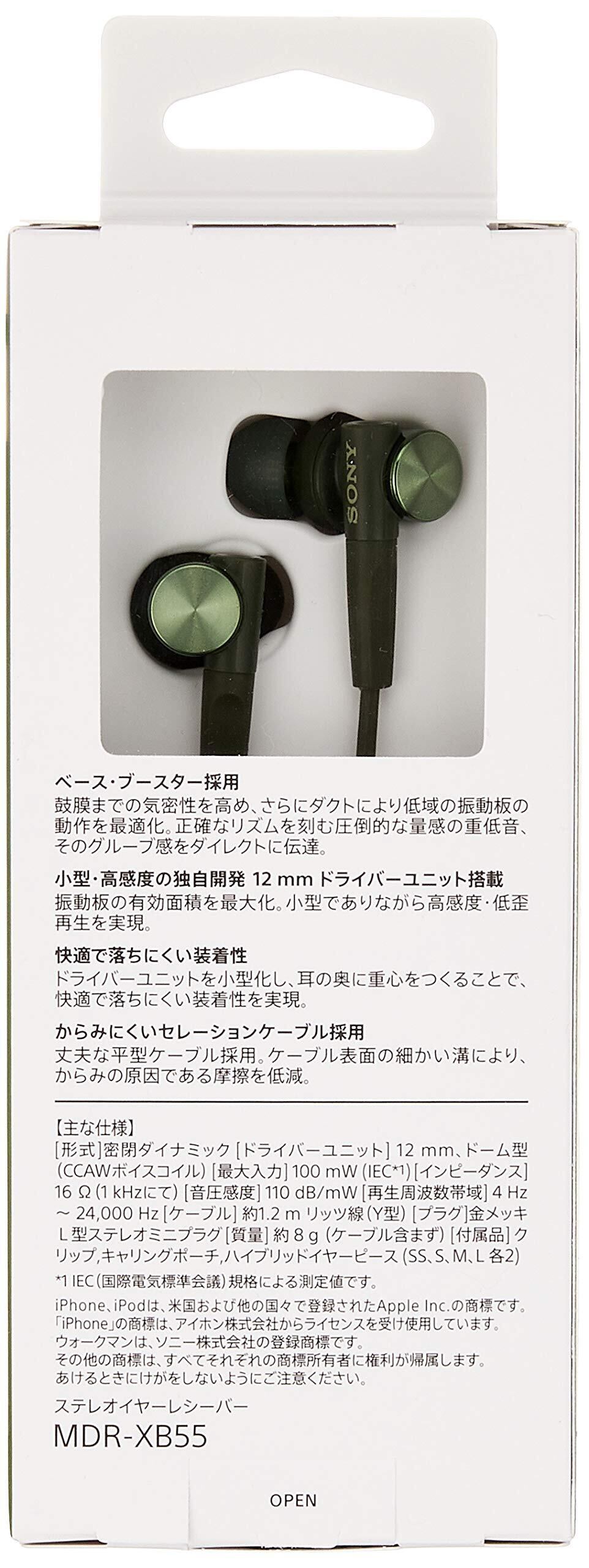 ソニー 有線イヤホン 重低音モデル MDR-XB55 : カナル型 グリーン MDR-XB55 G