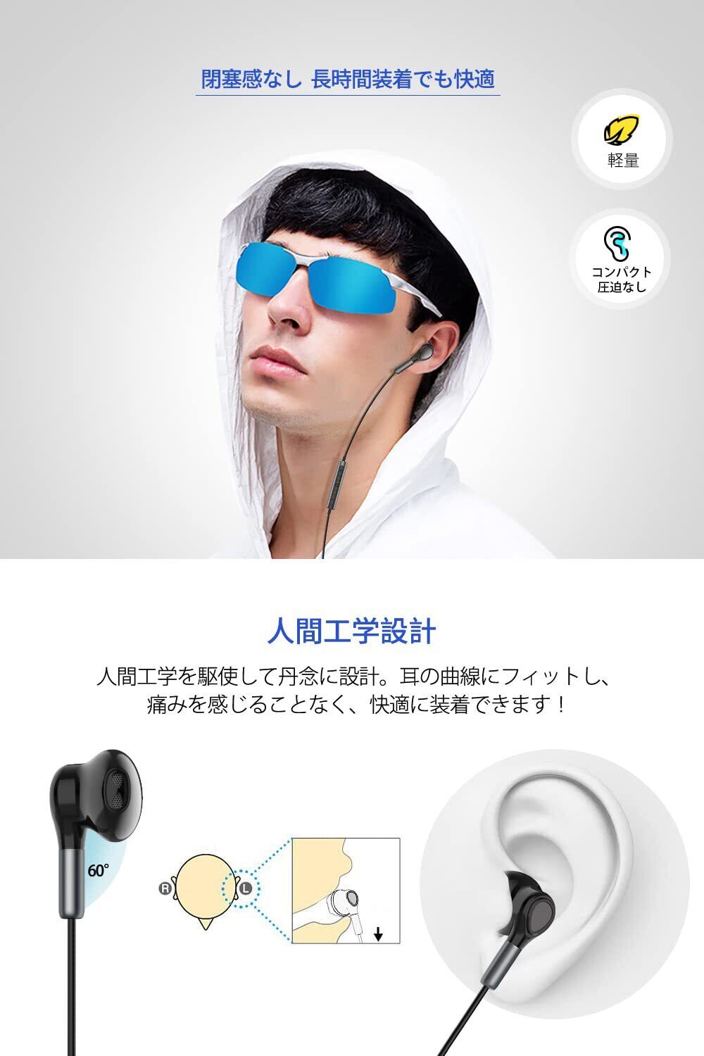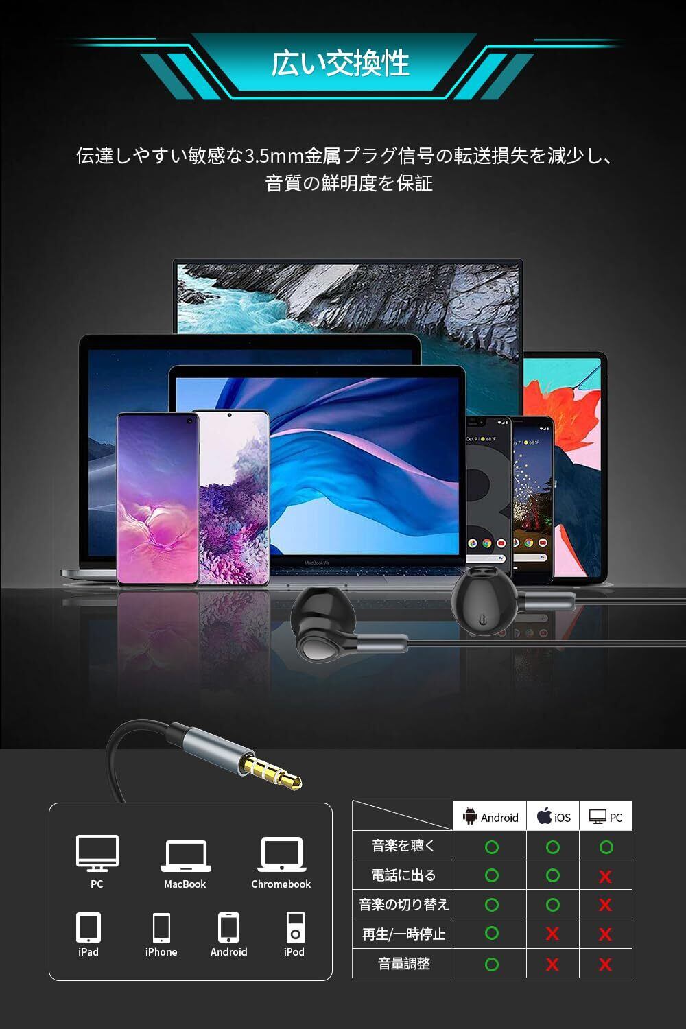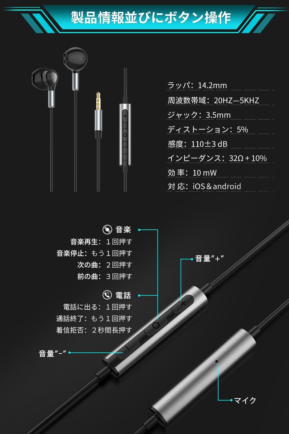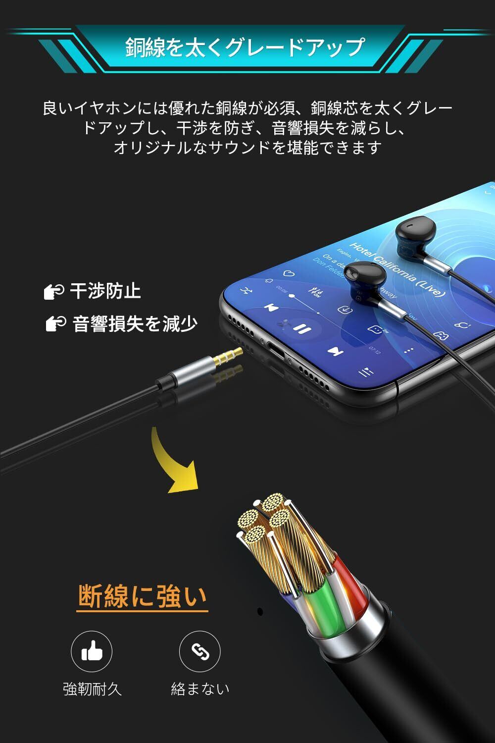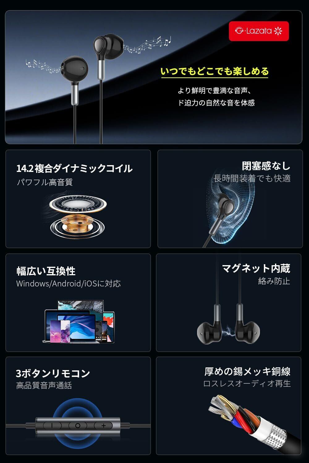 Glazata【グレードアップ版ダイナミック型ドライバ搭載&高感度MEMSマイク内蔵】3.5㎜有線イヤホン CTIA規格4極 マイク付き 3.5MMイヤホンジャック対応 「黒」