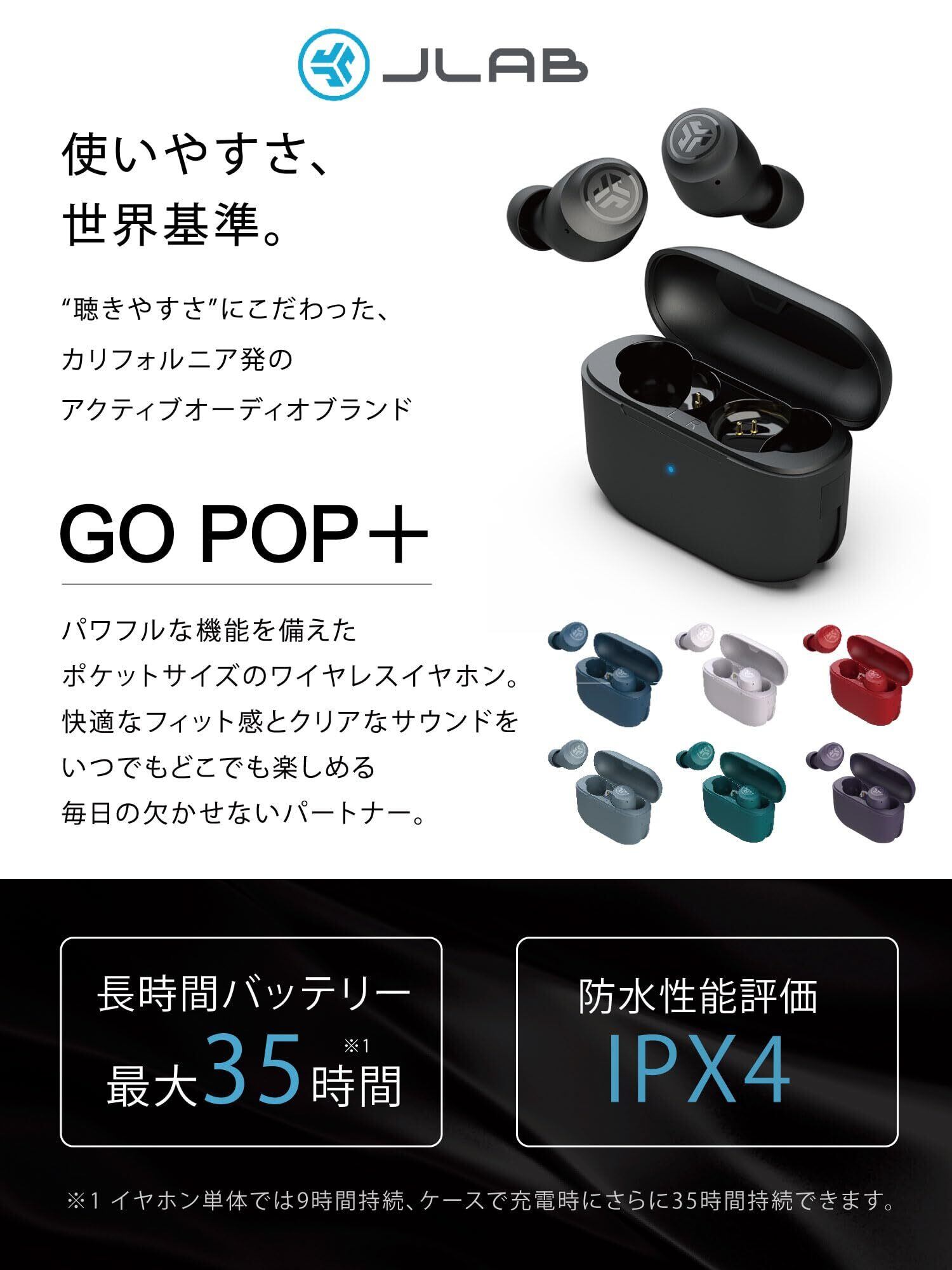 JLab ジェイラブ Go Pop+ ワイヤレスイヤホン 防水 iPhone Bluetooth コンパクト マイク付き 通勤 通学 移動 ジム 外部音取り込み 最大35時間連続再生 簡単タッチ操作 便利な充電コード一体型ケース付 JLabJapan公式2年 | kki