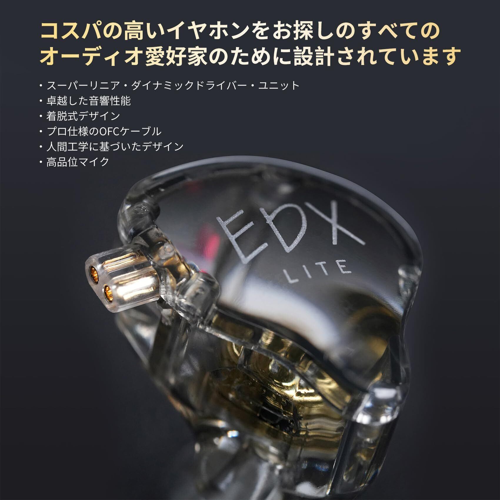 KZ EDX Lite 有線イヤホン イヤモニ インイヤー Wired Earphones 1DD 10mmアップダイナミックドライバ ゲーミング 耳掛け HIFI音質 遮音 重低音 ハイエンド 人間工学 低音強化 リケーブル対応 スポ一ツ/音楽モニター/ゲーム用 多機種対応 (透明, マイクなし) | kki