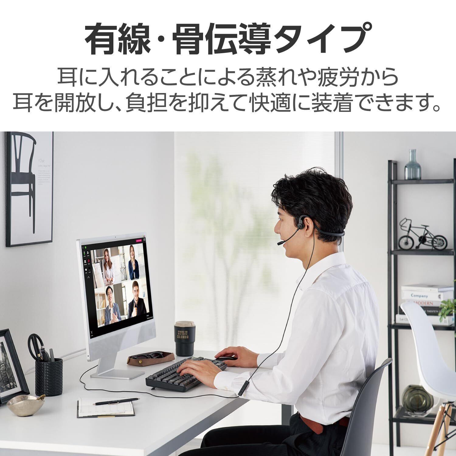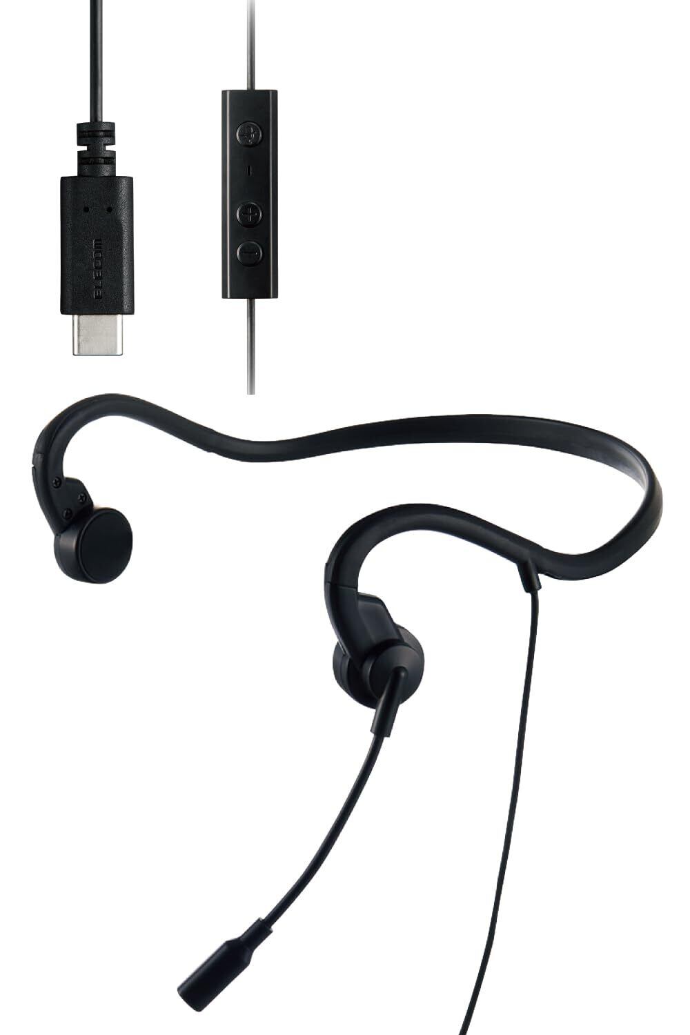エレコム 骨伝導イヤホン マイク付き 骨伝導ヘッドセット 有線 Type-C 軽量 ペアリング・充電不要 ハンズフリー 耳を塞がない 耳が痛くならない Web会議 オンライン HS-BC05CBK | kki