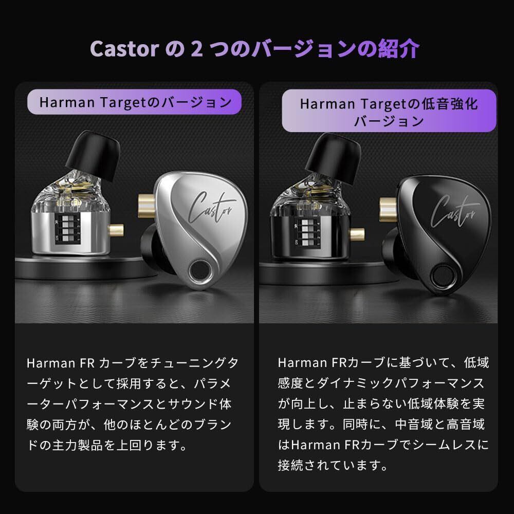 KZ Castor イヤホン 有線 カナル型 耳掛け ハイブリッド 重低音 リケーブル可能 デュアルダイナミックドライバー ミュージシャン シンガー用 インイヤーイヤホン HIFI音質 2dd チューニングスイッチ iPhone/Android適用(低音補強バージョン、ブラックマイク付き) | kki