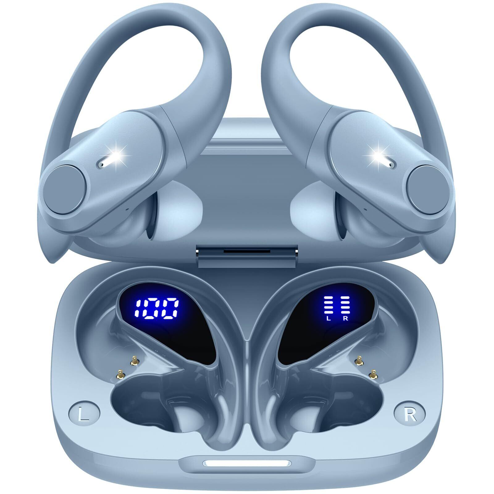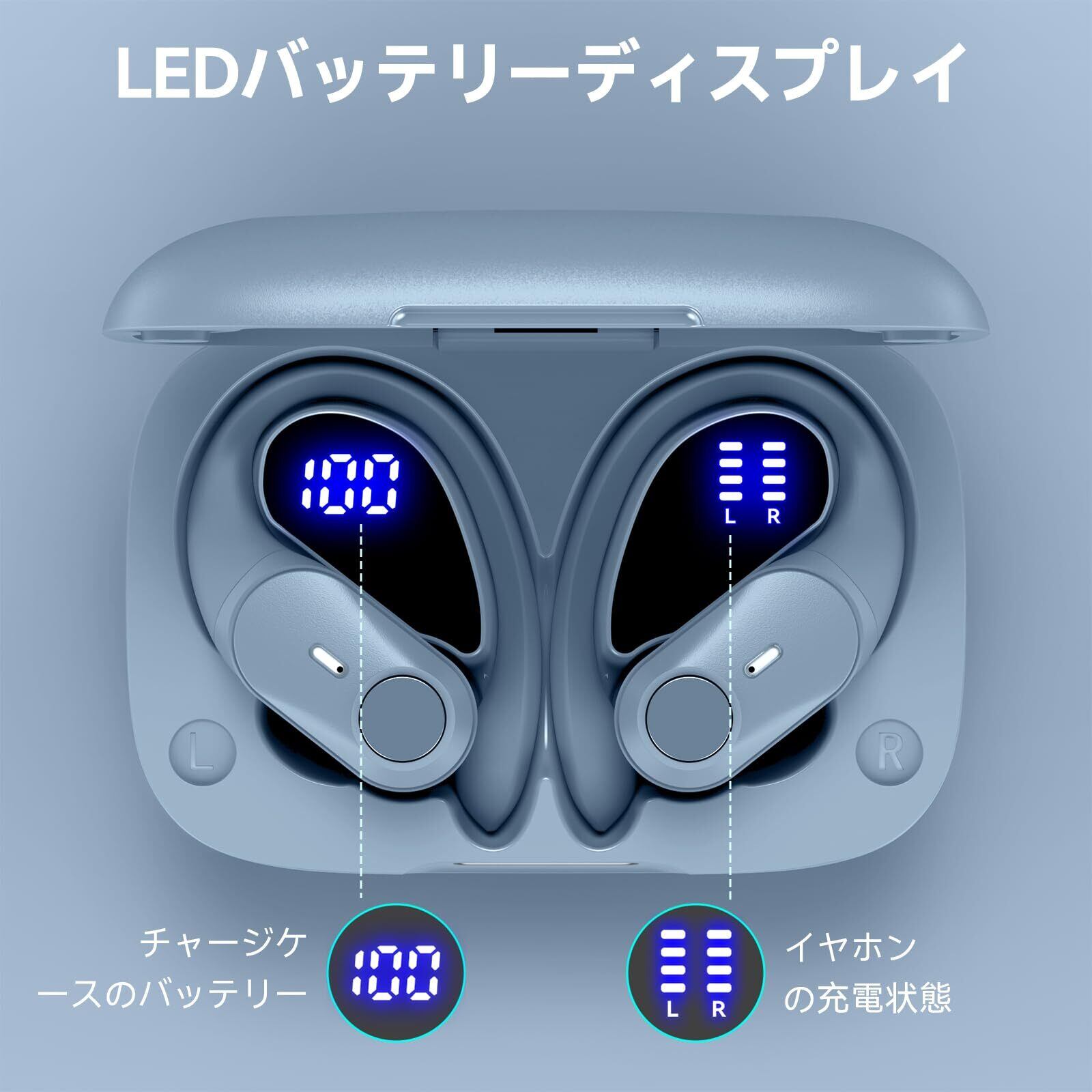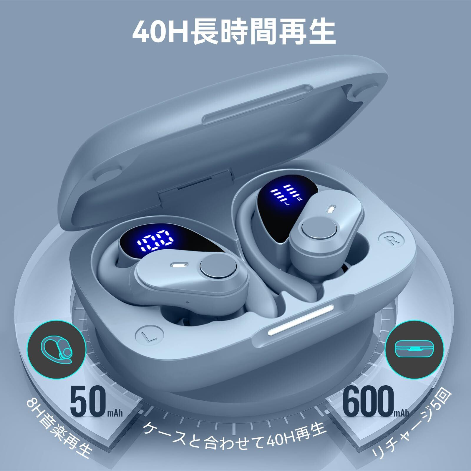 GOLREX イヤホン bluetooth ワイヤレスイヤホン 耳掛け式 ぶるーとゅーす イヤフォン 最大40時間再生 Hi-Fi音質 AAC対応 LEDディスプレイ 物理ボタン誤操作なし 落ちない 快適装着感 ランニング スポーツ IPX7防水 片耳/両耳モード QI/Type-C充電 通勤通学/WEB会議に適用 iOS/Android 水色 | kki