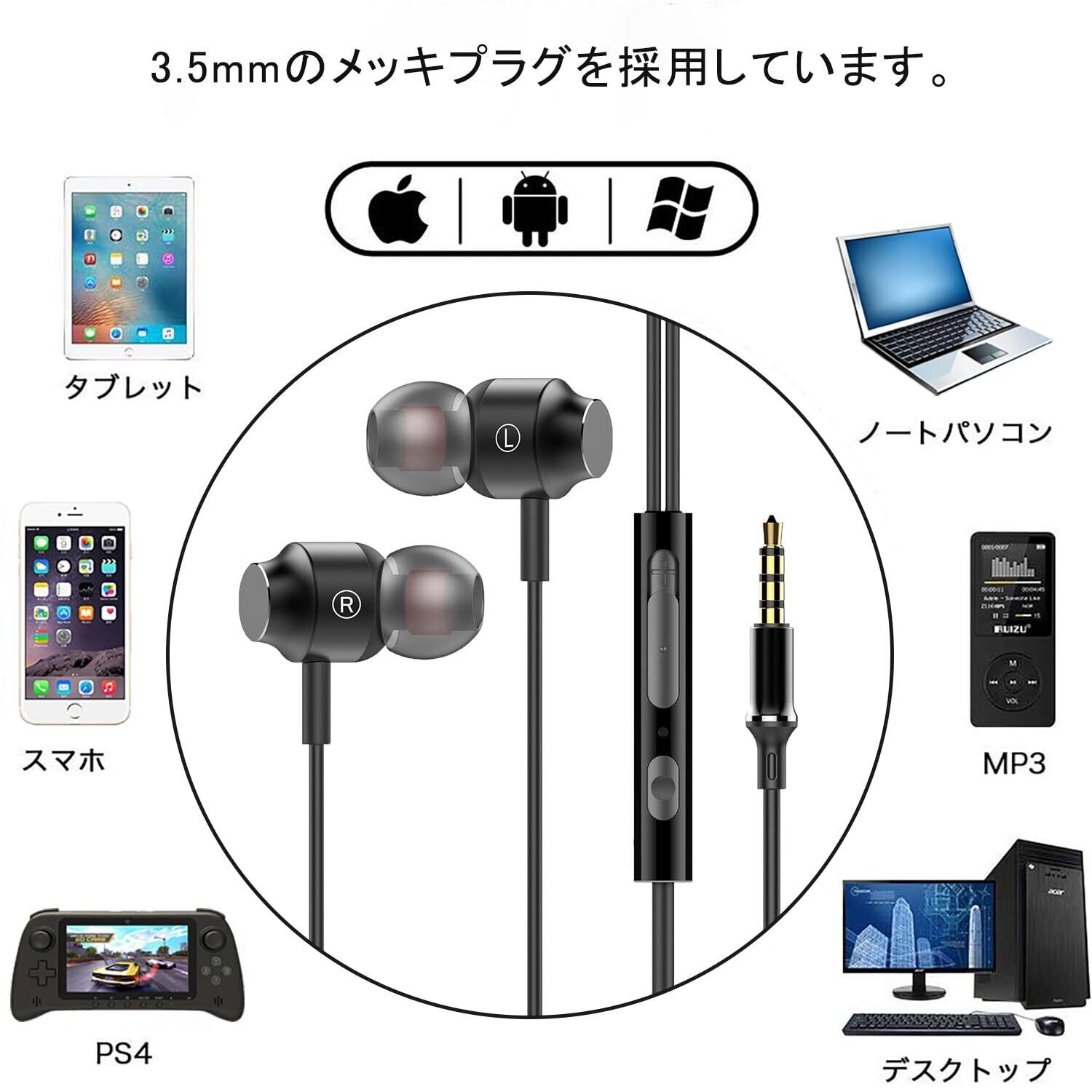 【2023秋 イヤホン3.5mm 有線 マイク付き リモコン付き ヘッドホン コンパクト ノイズ遮断 重低音 クリア通話 音漏れ防止 カナル型 磁気 マグネット式Android/iPhone/PC多機種対応 イヤフォン(黒) | kki